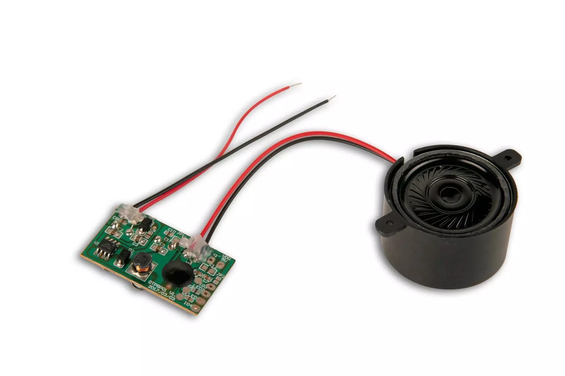 Sie werden überrascht sein, wie viel realistischer ein Geräusch klingt, wenn es mitten im Geschehen entsteht. Der Anschluss erfolgt über einen üblichen 16-V-Modellbahn-Trafo. Der Sound hat eine Länge von ca. 20 Sekunden. Geeignet für Gleich- und Wechselstrom.