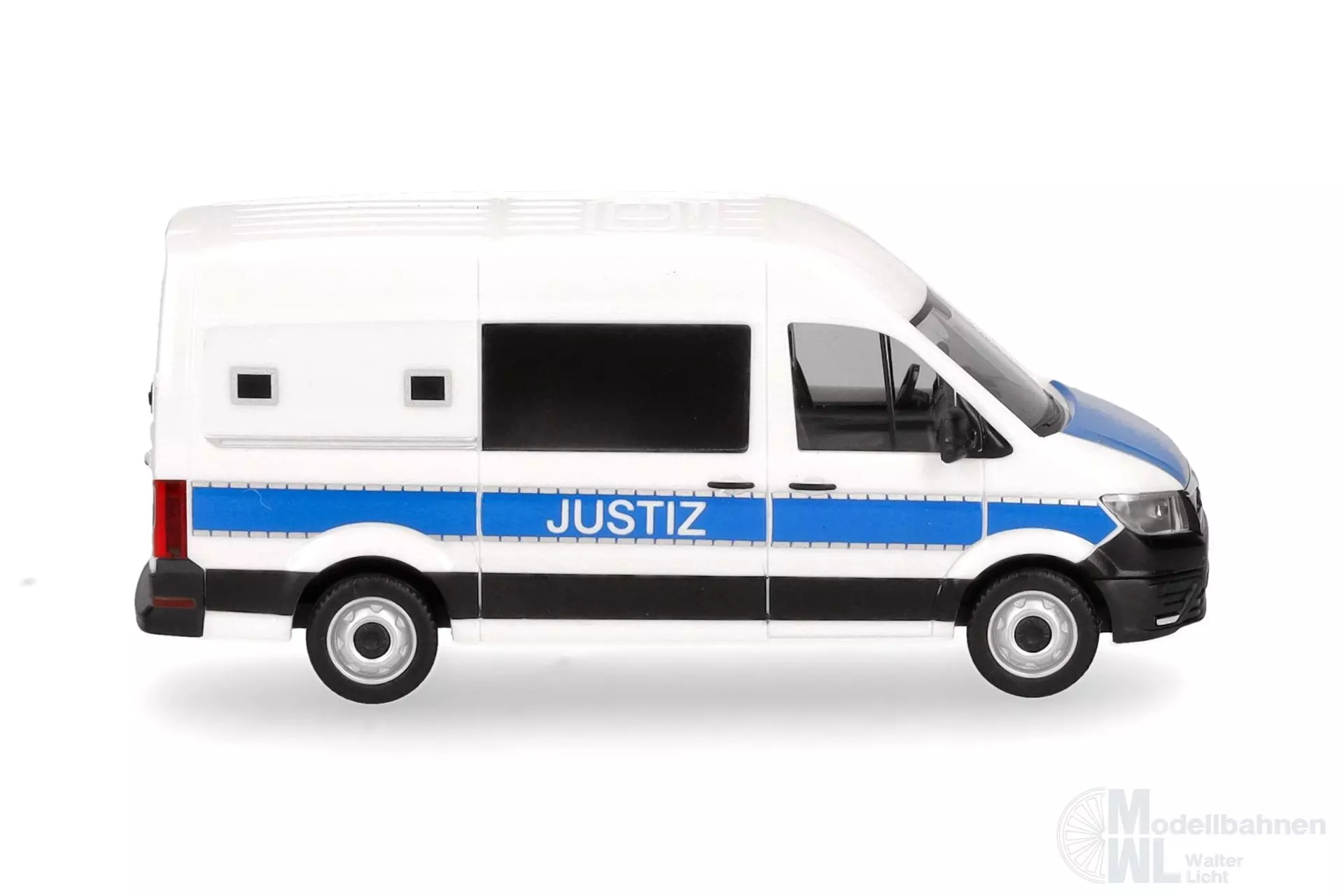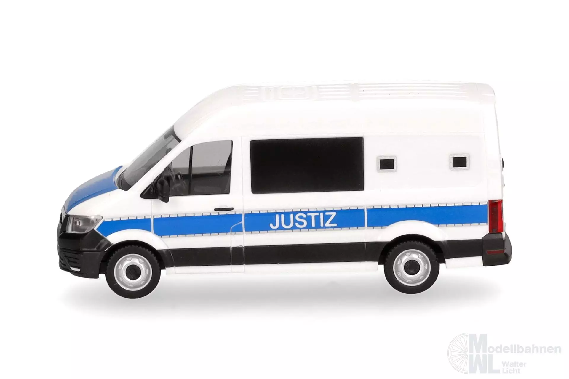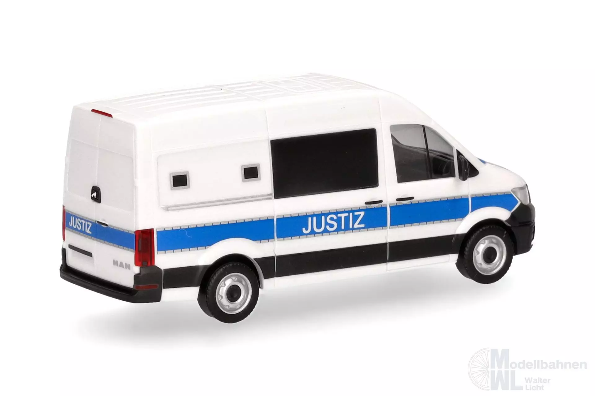 Um Strafgefangenen sicher von A nach B (z.B. zu einer Gerichtsverhandlung) zu bringen, setzt die Justiz in Deutschland spezielle, ausbruchssichere Fahrzeuge, wie diesen MAN TGE, ein. Das Modell hat, wie auch das Original, keine Sondersignalanlage und erscheint in einmaliger Auflage.
