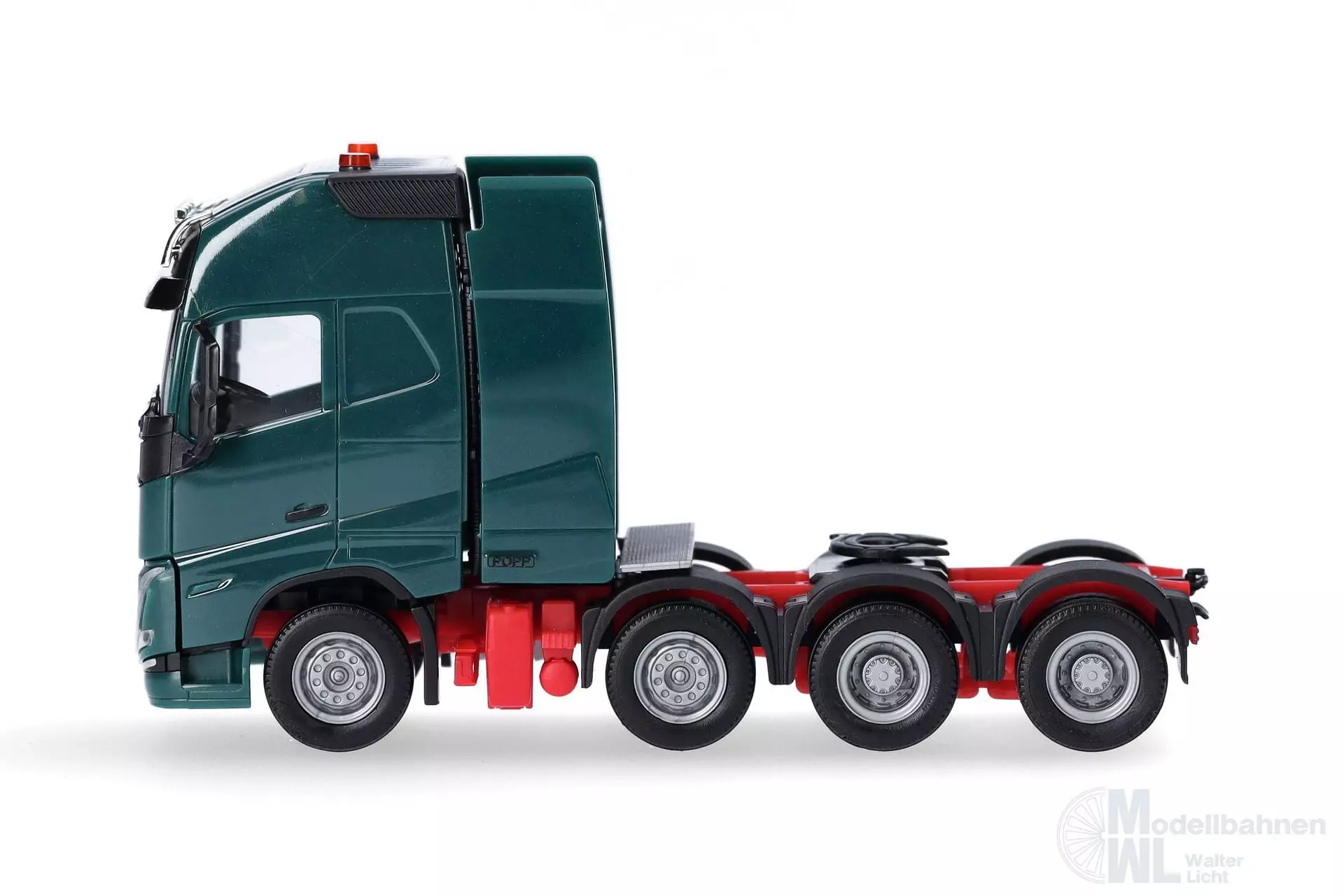 Nachdem die 4achsige Volvo Zugmaschine der 4. Generation (304788) sehr gut lief und es zwischenzeitlich ja auch die 5. Generation gibt, war dies der Anlass diese Schwerlastzugmaschine nun auch der Modellpflege zu unterziehen. Die 4. und 5. Generation unterscheiden sich nur gering (Scheinwerfer und Blinker), aber auch hier wird nun das Facelift der schweren 8x4-Zugmaschine erfolgen. Der Turm erhält wie auch beim Vorgänger eine POPP-Verkleidung.