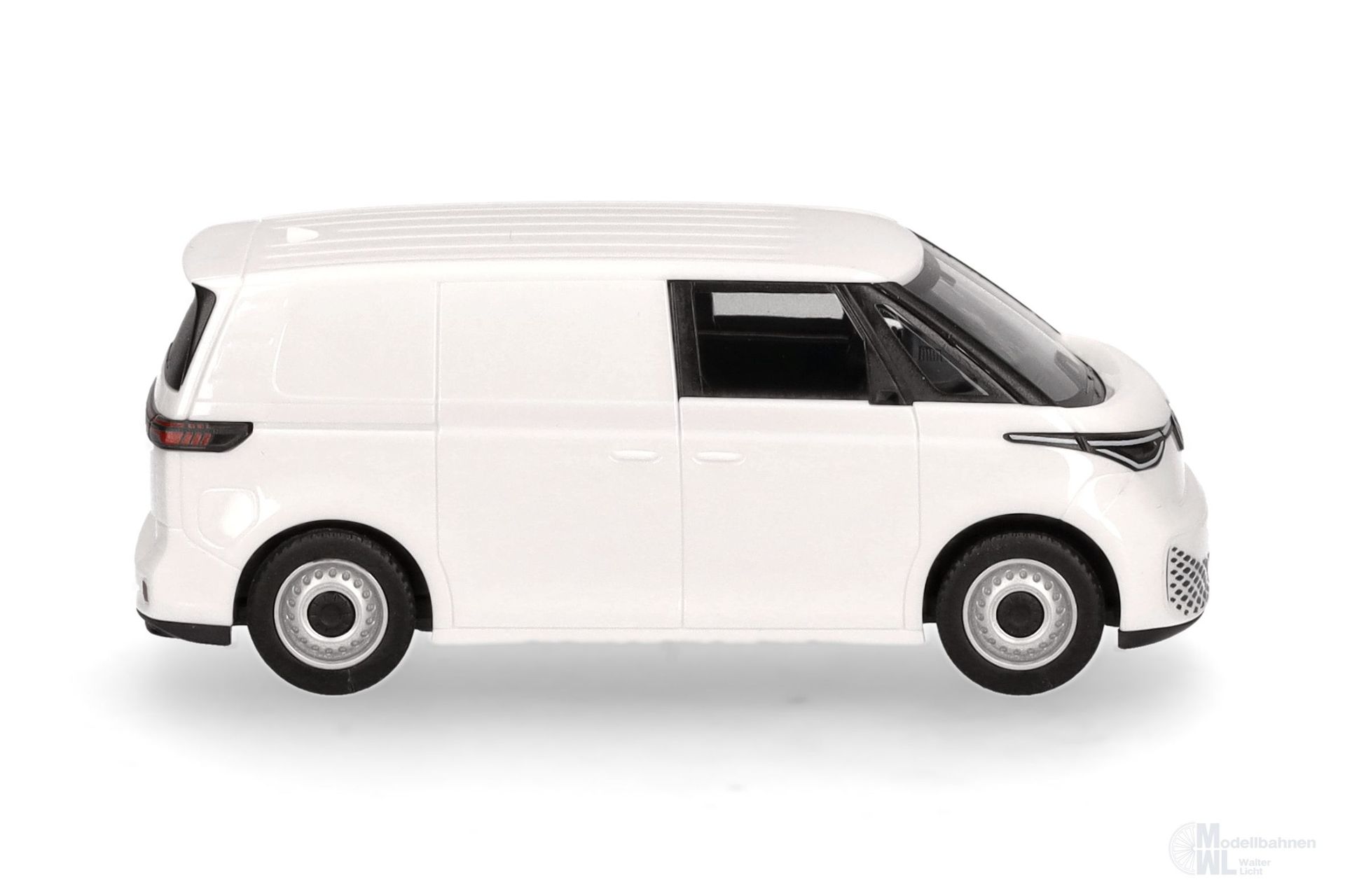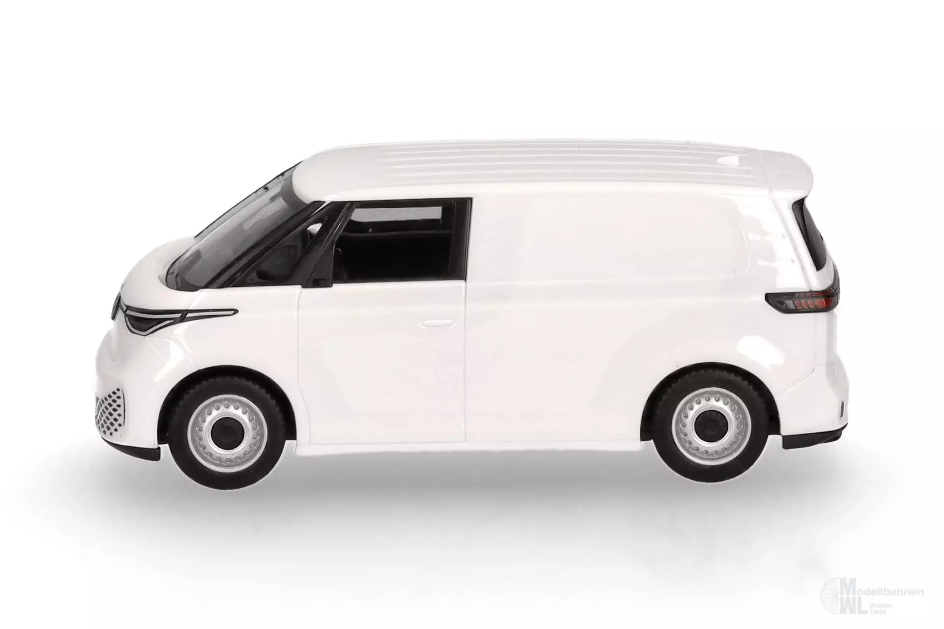 FORMNEUHEIT! Der neue VW ID. Buzz bewegt sich seit zwei Jahren auf Deutschlands Straßen und das vollelektrisch. Optisch angelehnt an den VW T1, wird so ein neues Zeitalter für die Transporter eingeläutet. Von Mai 2022 bis Jahresende 2023 wurden in Deutschland bereits 6.395 Zulassungen verzeichnet. Nach der normalen Version erscheint nun auch der CARGO, der einfacherer Radsätze und ein entsprechendes Innenteil bekommt. Die seitlichen Scheiben, werden im Druckverfahren als Kasten simuliert. Zunächst ist das Modell in Candyweiß erhältlich.