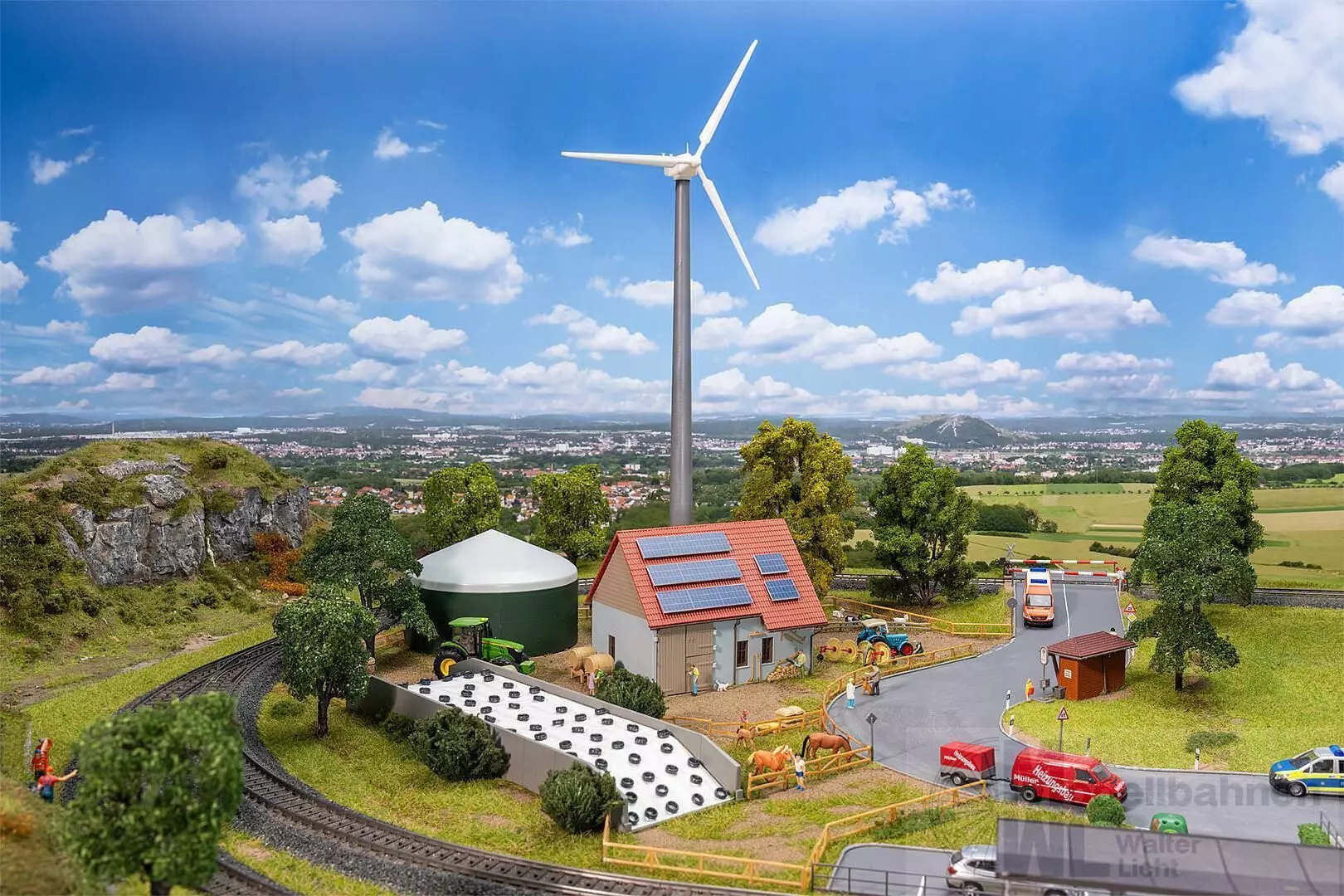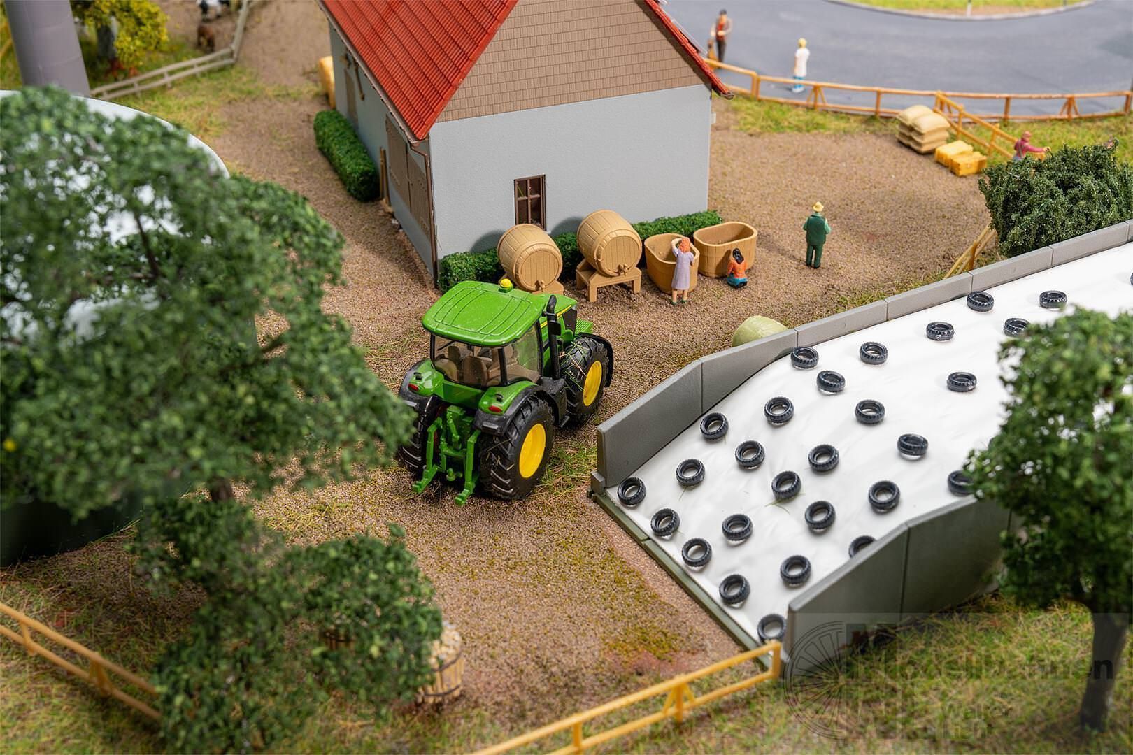 Willkommen in der Idylle des ländlichen Lebens! Dieses Set enthält eine rustikale Scheune mit traditionellen Werkzeugen und modernen Solarzellen auf dem Dach sowie ein geräumiges Fahrsilo und einen Gasspeicher. Ein elegantes Windrad thront über der Szenerie und liefert nachhaltige Energie. Dieses Modellbau-Set vereint die traditionelle Landwirtschaft mit der zukunftsweisenden Kraft moderner Technik und lässt Modellbauherzen höherschlagen. Inhalt: Scheune, Gasspeicher, Fahrsilo, Windrad