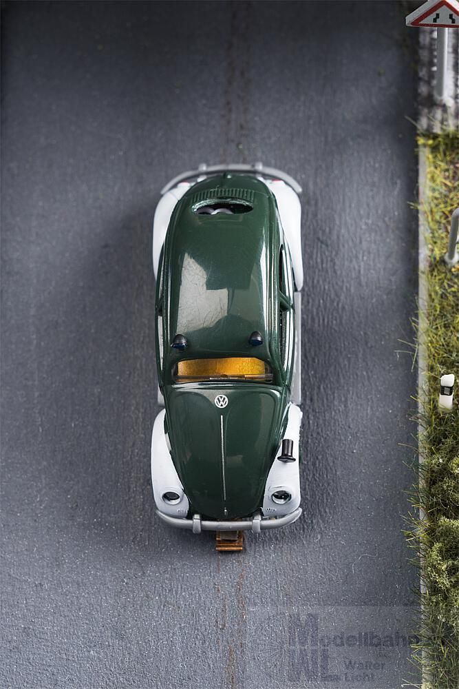 Dieses grün-weiße Polizei-Modell des VW-Käfers ist dem erfolgreichen Original Pkw der Marke Volkswagen nachempfunden, welcher von Ende 1938 bis zum Sommer 2003 produziert wurde. Mit über 21,5 Millionen verkauften Fahrzeugen zählte er damals zu den beliebtesten Automobilen der Welt und wurde unter anderem von der Polizei genutzt und angepasst. Mit Vollgas bringt das Miniaturmodell des historischen Polizeiwagens etwas Automobilgeschichte auch auf Ihre Anlage.