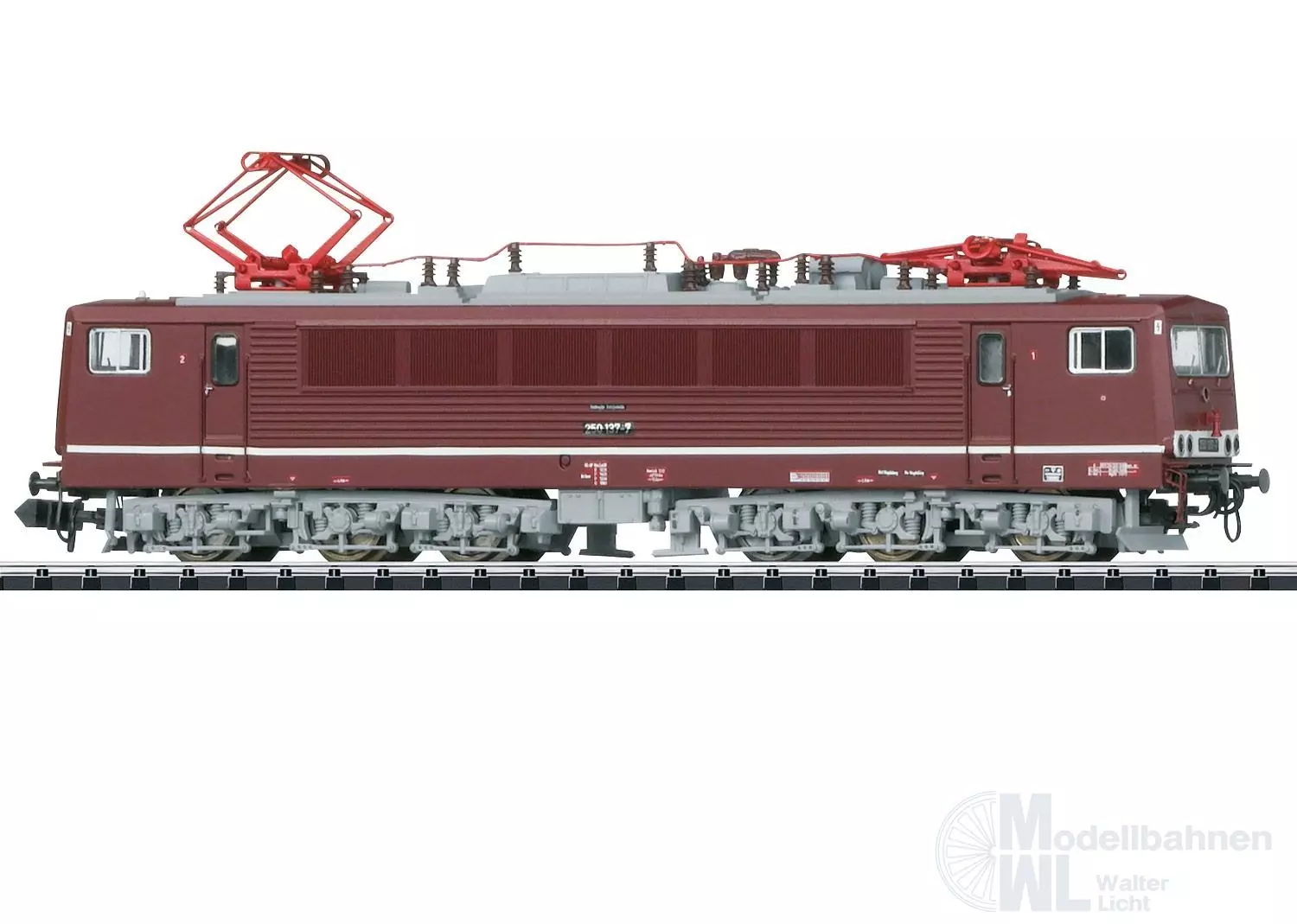 Vorbild: Elektrolokomotive 250 137-7 der Deutschen Reichsbahn (DR) im Zustand um 1987. Achsfolge Co'Co', Baujahr ab 1974.Einsatz: Schwere Güterzüge.