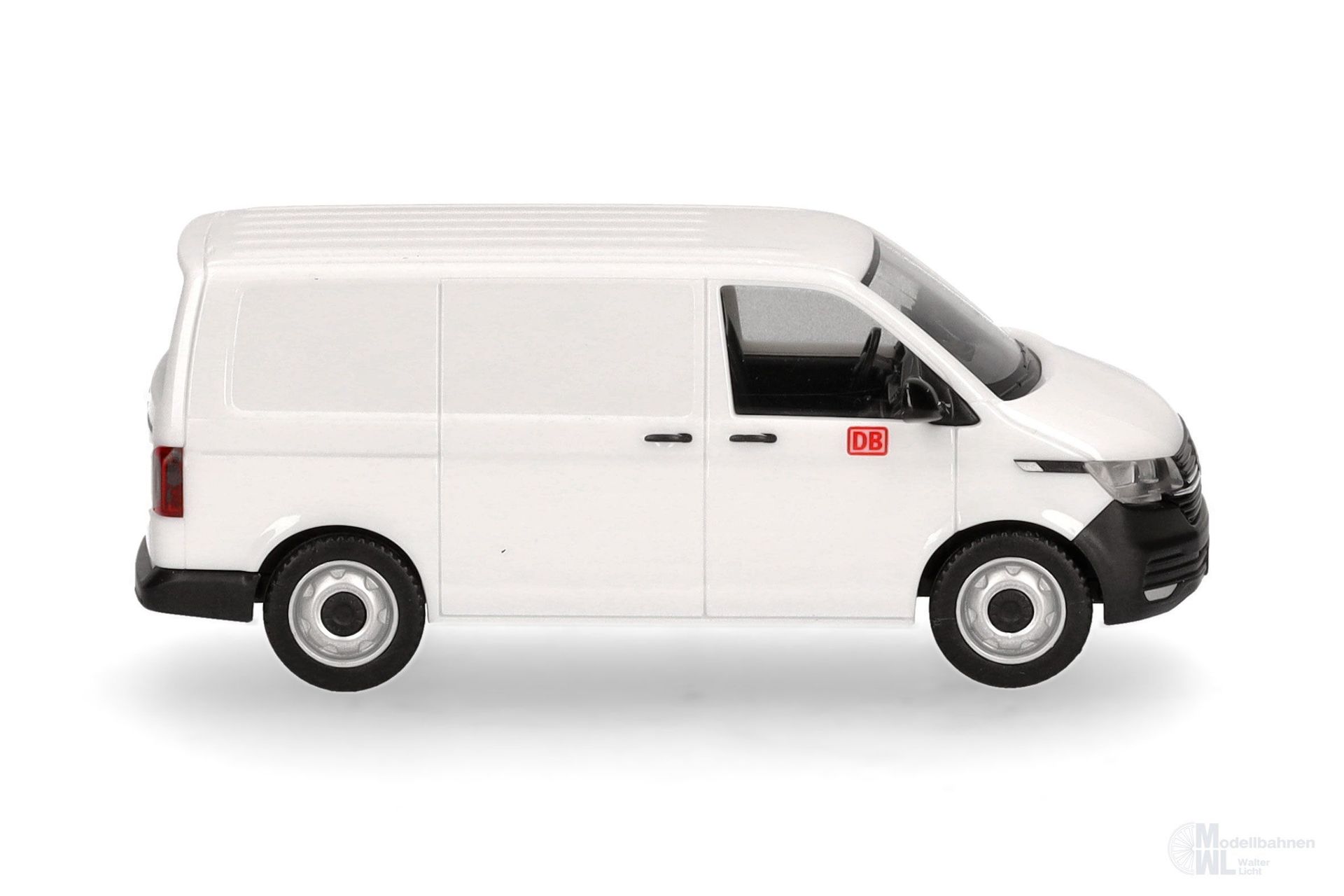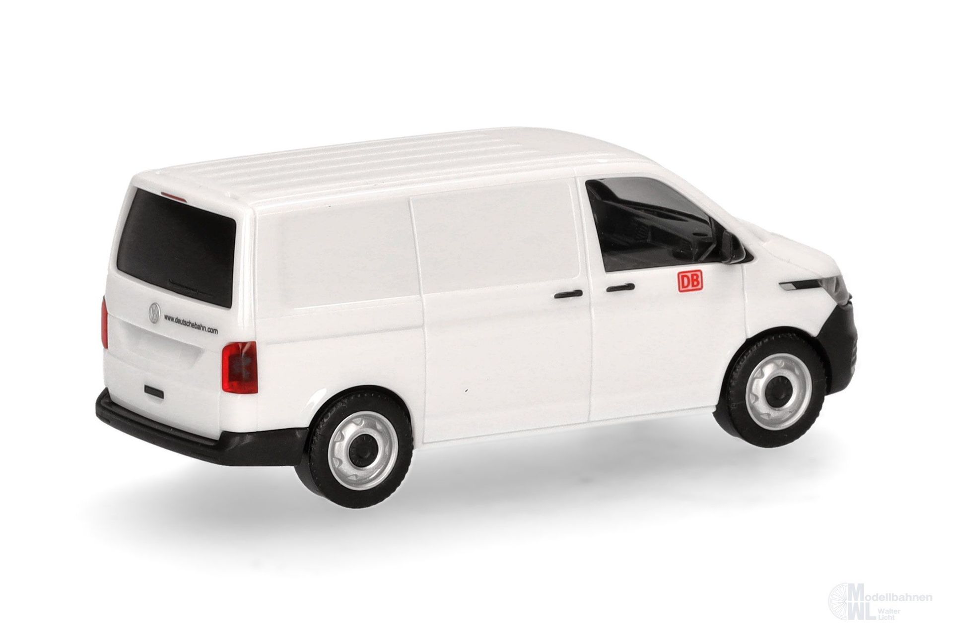 DB (der Keks) ist nicht nur auf Zügen zu finden. Die Deutsche Bahn hat auch zahlreiche Transporter für die verschiedensten Zwecke im Fuhrpark. Hier wird der VW T6.1 als Transporter mit einer Schiebtür auf der rechten Seite und Heckklappe mit Fenster umgesetzt.