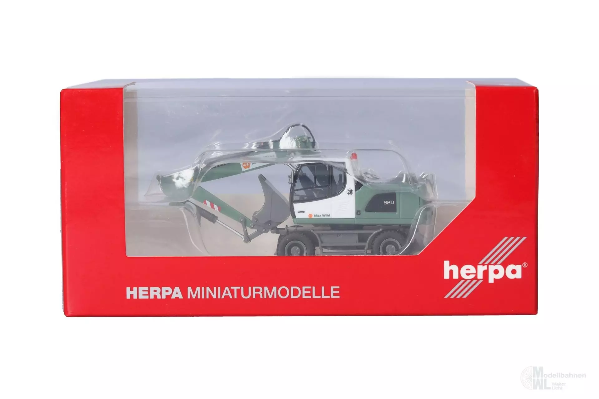 Direkt folgende auf den MAN Semitieflade-Sattelzug (318273) aus dem letzten Prospekt, erscheint ein weiteres Gerät aus dem Fuhrpark von Max Wild in Berkheim. Der kleine A920 Mobilbagger ist für die kleineres Baustellen des Unternehmens im Einsatz.