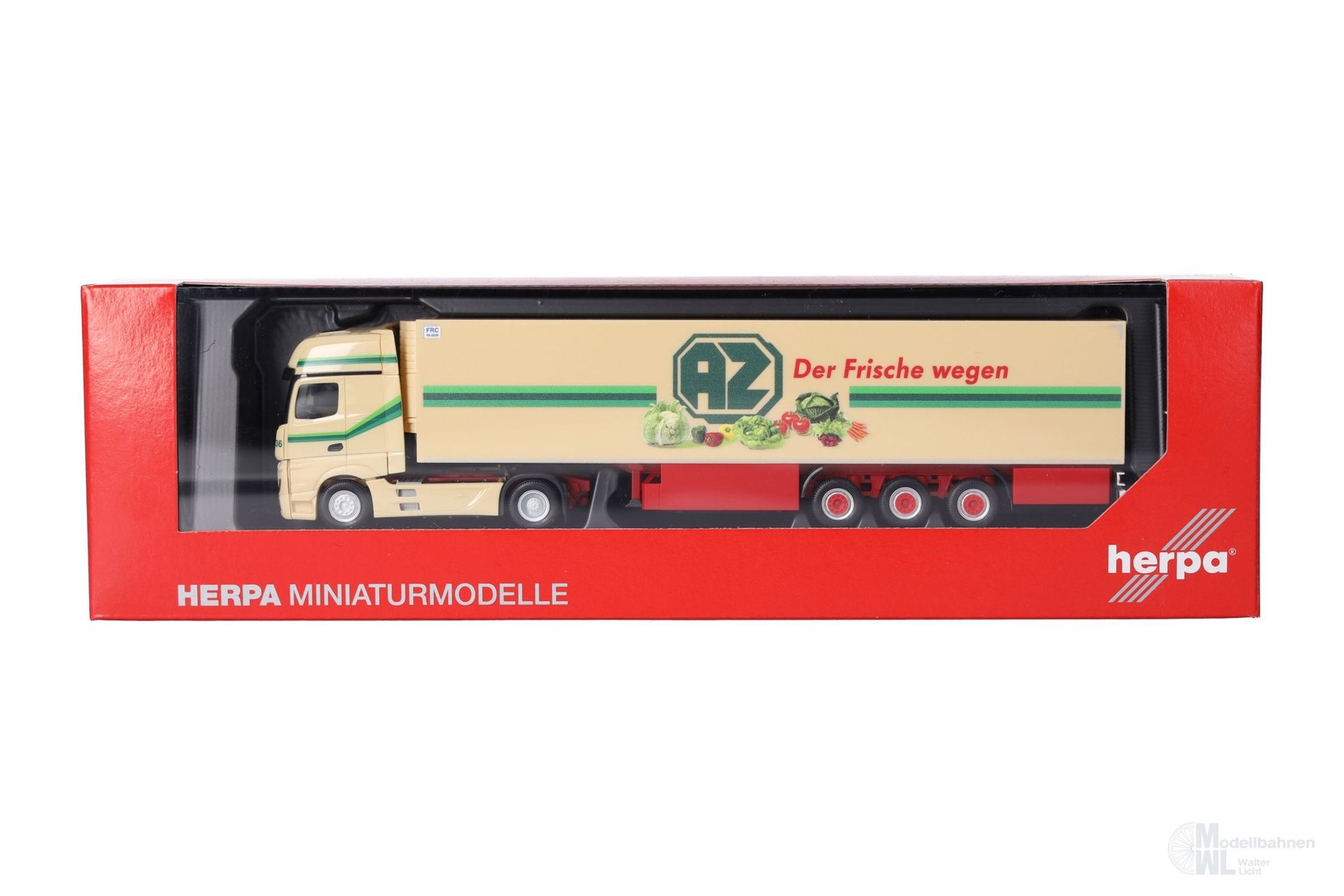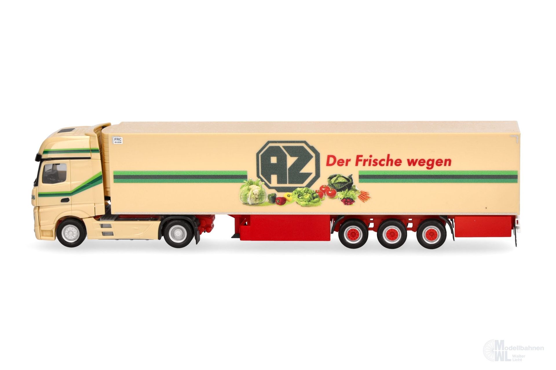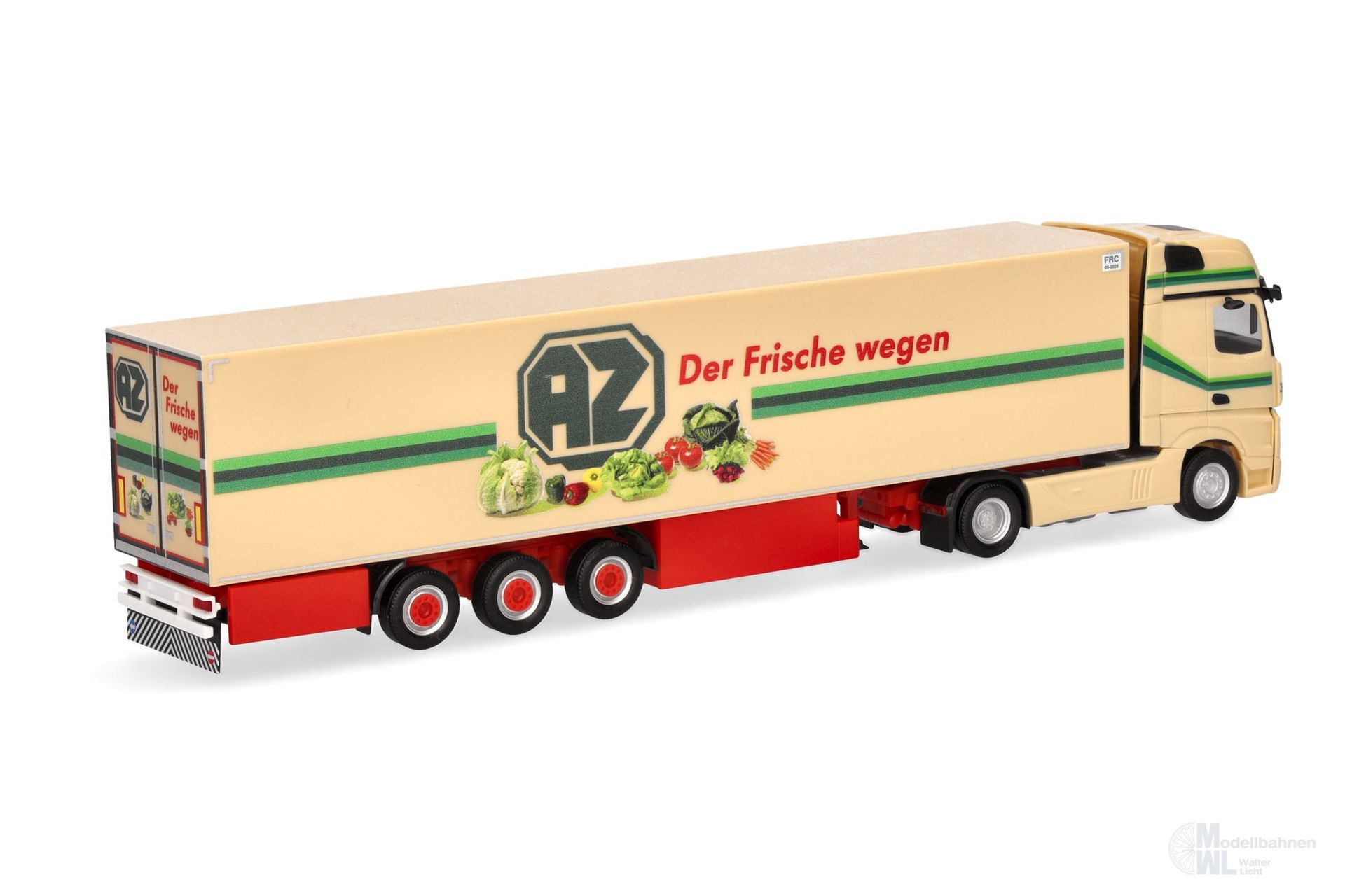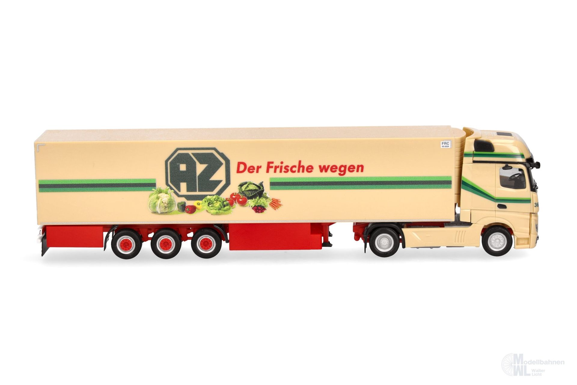 Weit über 100 Fahrzeugen der AZ Kempen aus Straelen am Niederrhein sind auf deutschen Straßen unterwegs. Volvo und Mercedes-Benz sind dabei immer in den neusten Varianten dabei. Neben den bekannten vollverkleideten Aufliegern, findet man nun auch konventionelle Kühlkofferauflieger mit normalen Palettenkästen, wie hier in diesem Modell umgesetzt. Nach dem Volvo aus 2014 (303644) und den beiden Mercedes-Benz Actrosmodellen in 1/87 (306546) und 1/160 (066532) ist es hier wieder ein Actros der 2018er Generation in limitierter Auflage. (Nordrhein-Westfalen/Kempen)