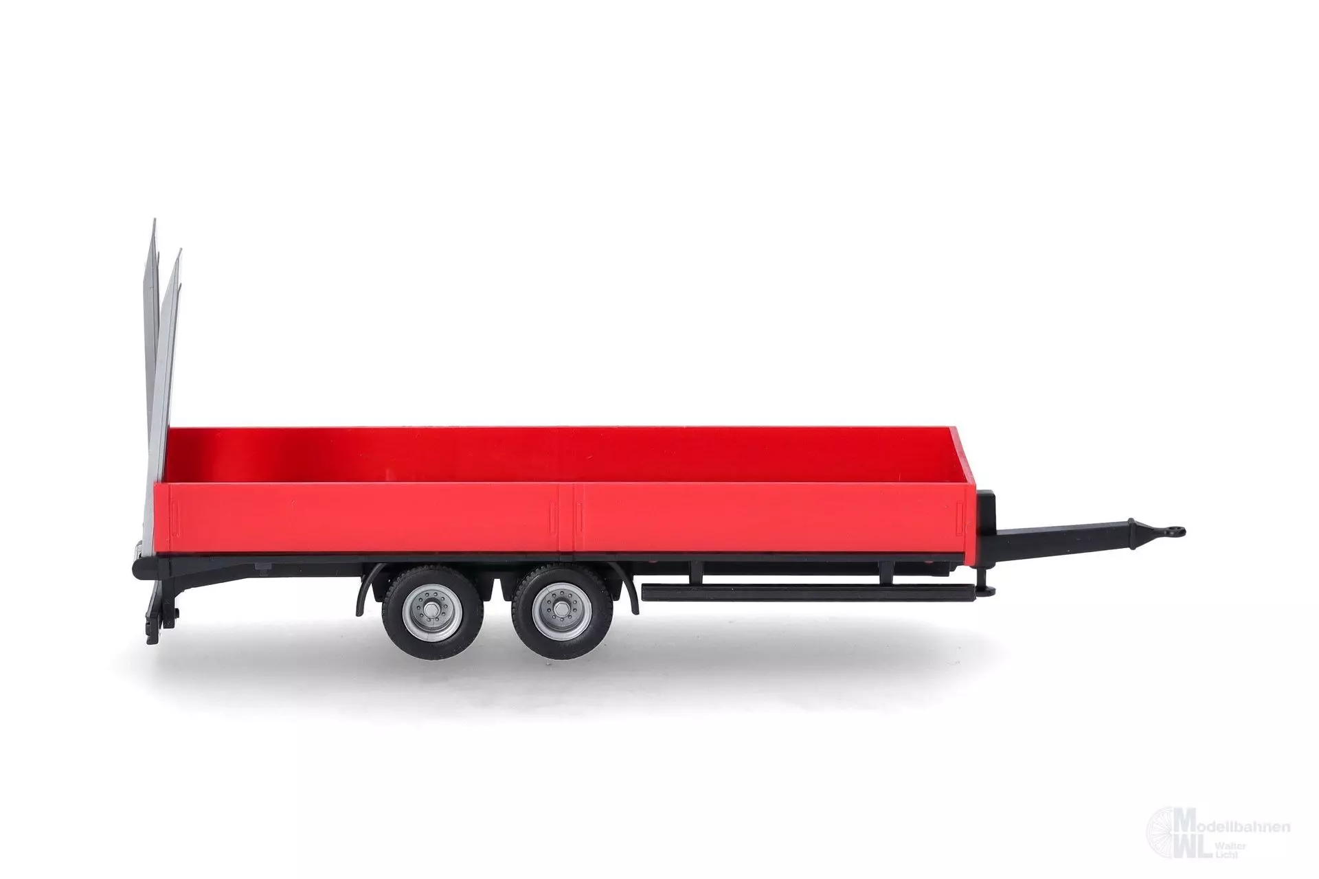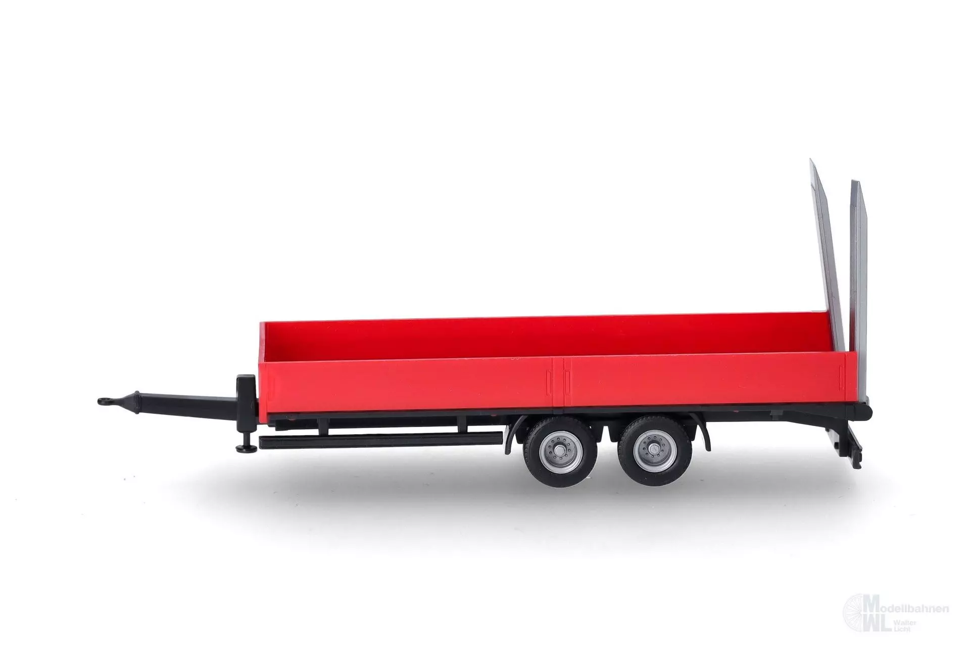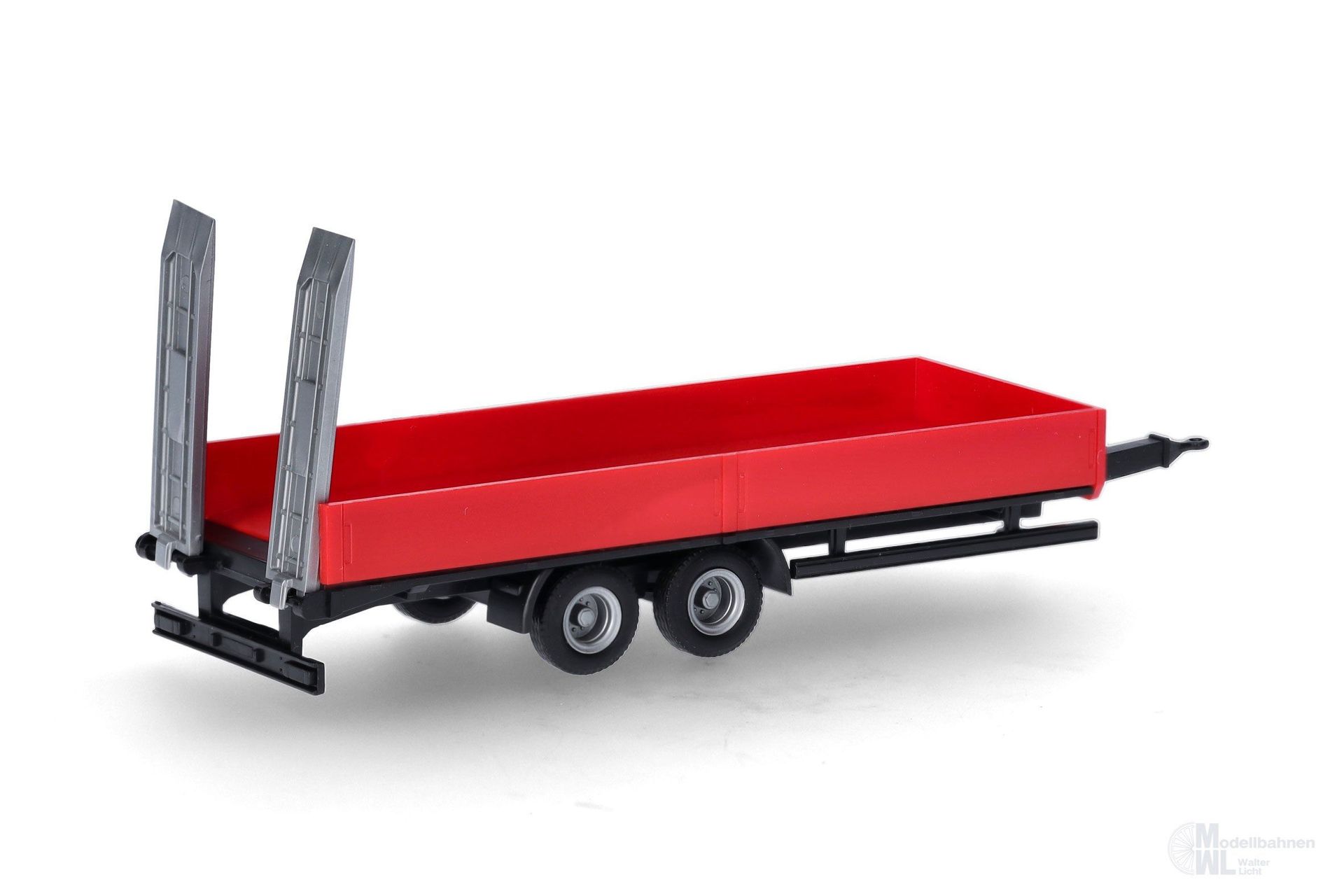 Für den Transport kleinerer Baumaschinen und Materialien wird bei vielen Firmen der Tieflade-Anhänger mit beweglichen Auffahrrampen eingesetzt, den Herpa nun in roter Farbgebung anbietet.
