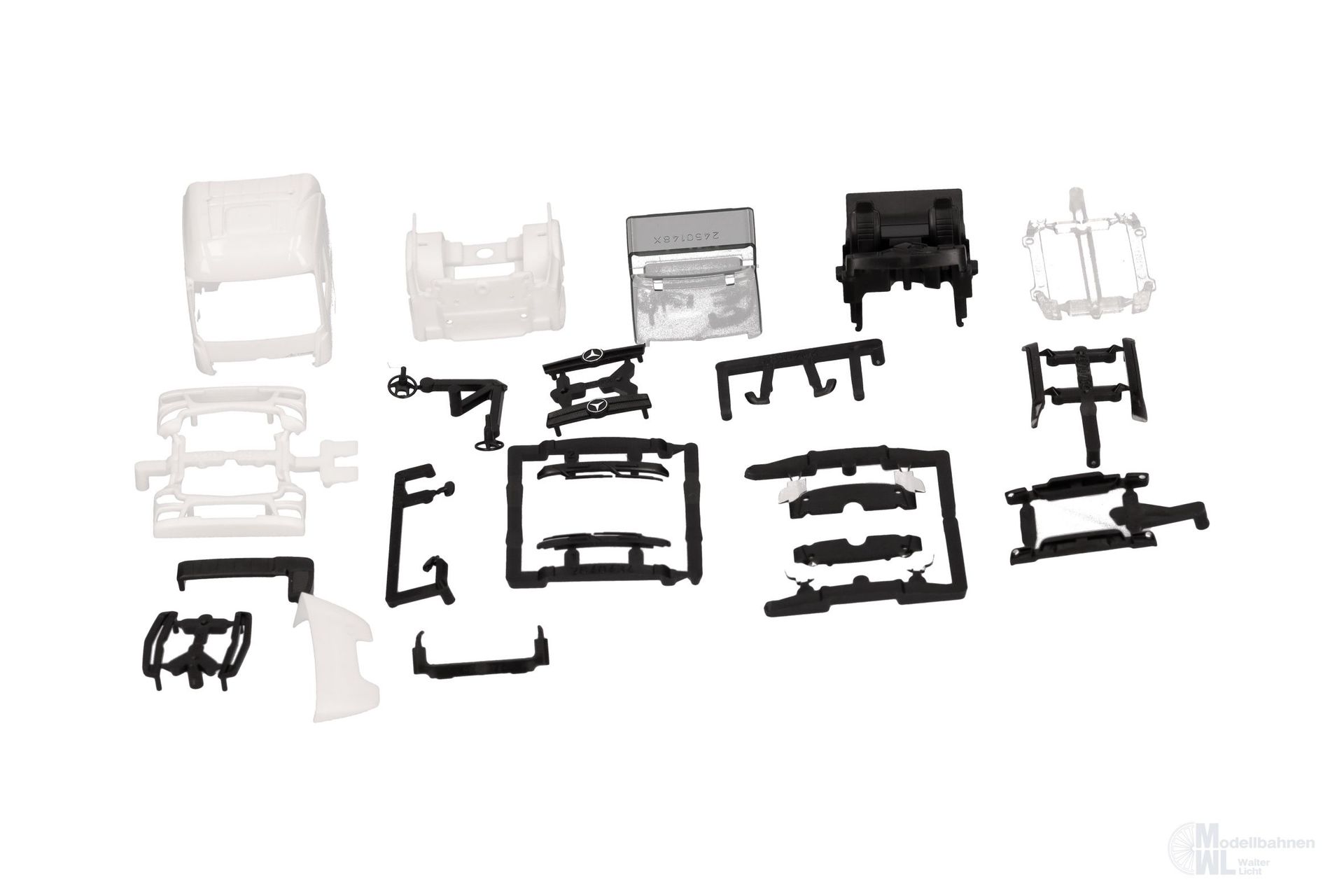 Mit diesem Fahrerhaus mit seitlicher Lüftung ist es nun auch wieder möglich aus dem Teileservice einen vorbildgerechten Mercedes-Benz Actros Streamspache 2.3 als Motorwagen selbst zusammenzustellen. Das Set beinhaltet Teile für zwei komplette Fahrerhäuser.