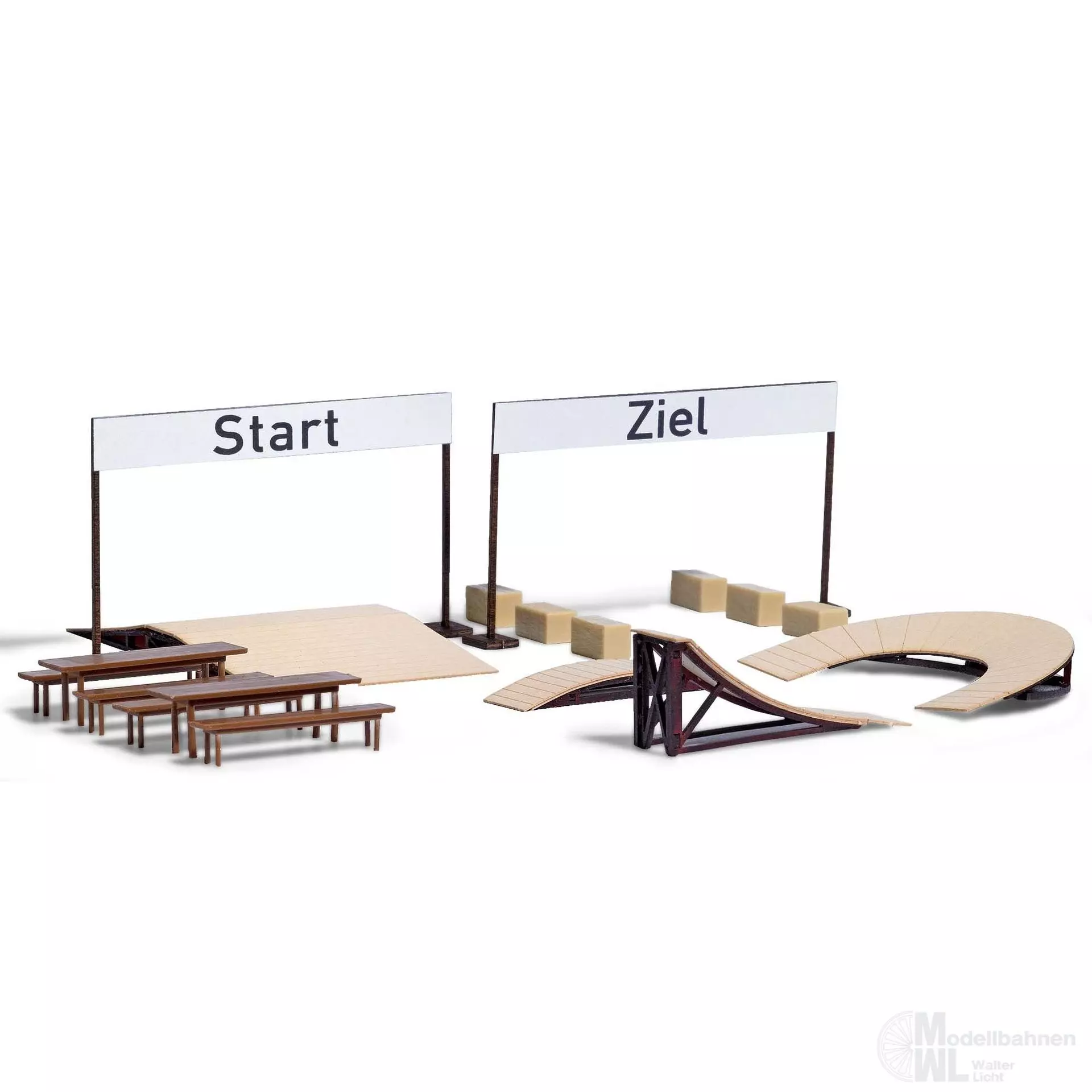 Bausatz zur Ausgestaltung eines Bike-Trails im flachen oder bergigen Gelände. Mit den Start-ZielMarkierungen, mehreren Hindernissen und verschiedenen Trail-Elementen aus Holz ist der Bike-Trail perfekt für individuelle Gestaltungswünsche.