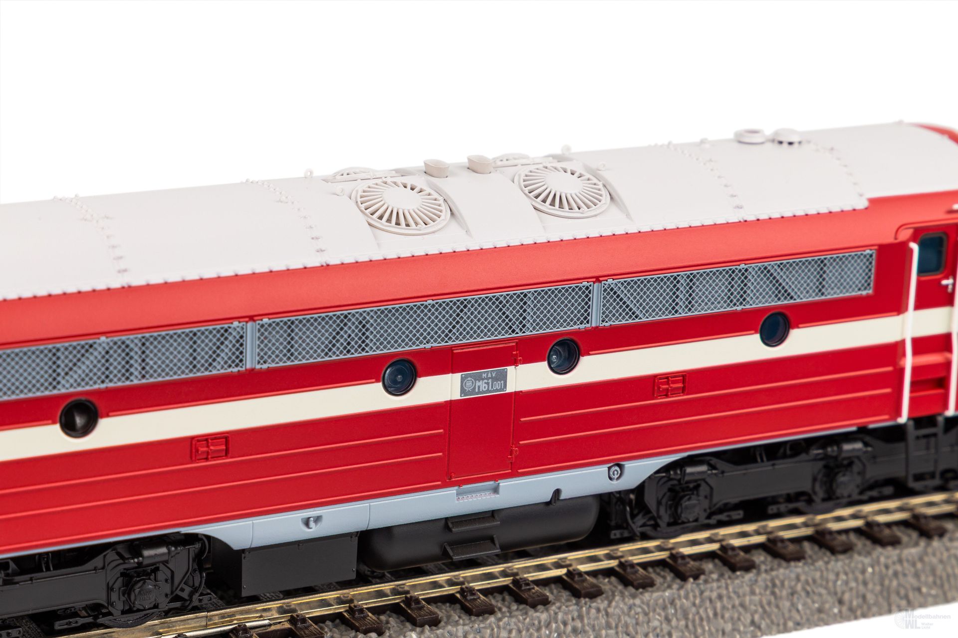 Neuheit 2025: Variante der Diesellokomotive NoHAB als M61 der MÁV in Epoche IV. Über Geschmack lässt sich trefflich streiten, es gibt jedoch Dinge, deren Eleganz über jeden Zweifel erhaben ist. Von der unbestrittenen Eleganz des Vorbilds dürfen auch die PIKO Modelle der NoHAB profitieren. Um diesen Gesamteindruck zu erreichen wurde großer Wert auf Details gelegt. Die seitlichen Lüftungsgitter werden als stark gliedernde Elemente des Lokkastens mit feinen Ätzteilen ausgeführt und sind ein absoluter Blickfang. Aber auch die markanten stirnseitigen Scheiben sowie die seitlichen „Bullaugen“ tragen durch den perfekt bündigen Sitz zum hervorragenden Bild bei. Vollendet wird der Eindruck durch die präzise und hochdetaillierte Gestaltung der Drehgestelle. Als Antrieb dient ein kräftiger und laufruhiger Motor mit zwei Schwungmassen. Das Modell verfügt über eine PluX22-Schnittstelle und ist für die unkomplizierte Soundnachrüstung mit größtmöglichem Lautsprecher vorbereitet.