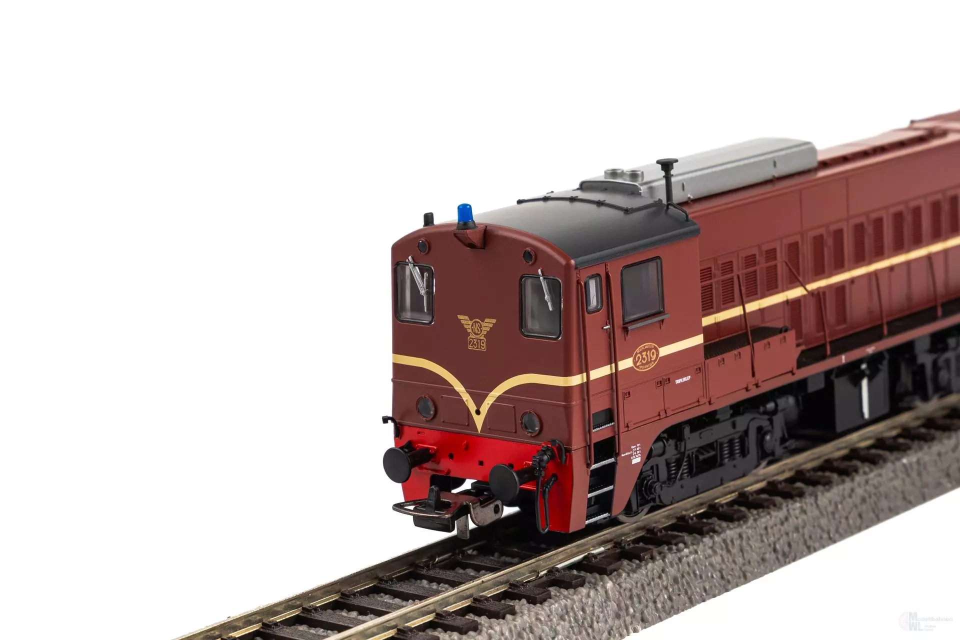 Neuheit 2025: Druckvariante der Rh 2200 der NS in Epoche III. Das Modell besticht durch feinste Gehäuse-Gravuren und Detaildarstellungen der schweren Drehgestelle amerikanischer Bauform mit vielen extra angesetzten Teilen. Die Geländer sind filigran und freistehend ausgeführt. Weitere Besonderheiten stellen der freie Führerhausdurchblick und die digital schaltbare Führerstandsbeleuchtung dar. Die Soundvariante der Rh 2200 der NS besitzt ab Werk einen PSD XP Sound-Decoder. Das Modell trägt das Gütezeichen fits mfx®. Um Digitaldecoder für alle Nutzer der aktuellen Märklin Digitalzentralen zuverlässig einsetzbar zu machen, wurde gemeinsam mit Märklin und anderen Herstellern ein neues Gütezeichen „fits mfx®“ eingeführt. Dieses kann nur von Digitaldecodern verwendet werden, die einen speziellen mfx®-Test durchlaufen und vollumfänglich bestanden haben. Diese Decoder und auch die Lokomotiven in denen sie verbaut sind, tragen das Gütezeichen „fits mfx®“, welches die uneingeschränkte mfx® Funktionalität zertifiziert. Das bedeutet, dass nunmehr auch PIKO Produkte mit dem „fits mfx®“ Logo die vielfältigen Funktionen von mfx® vollständig unterstützen.