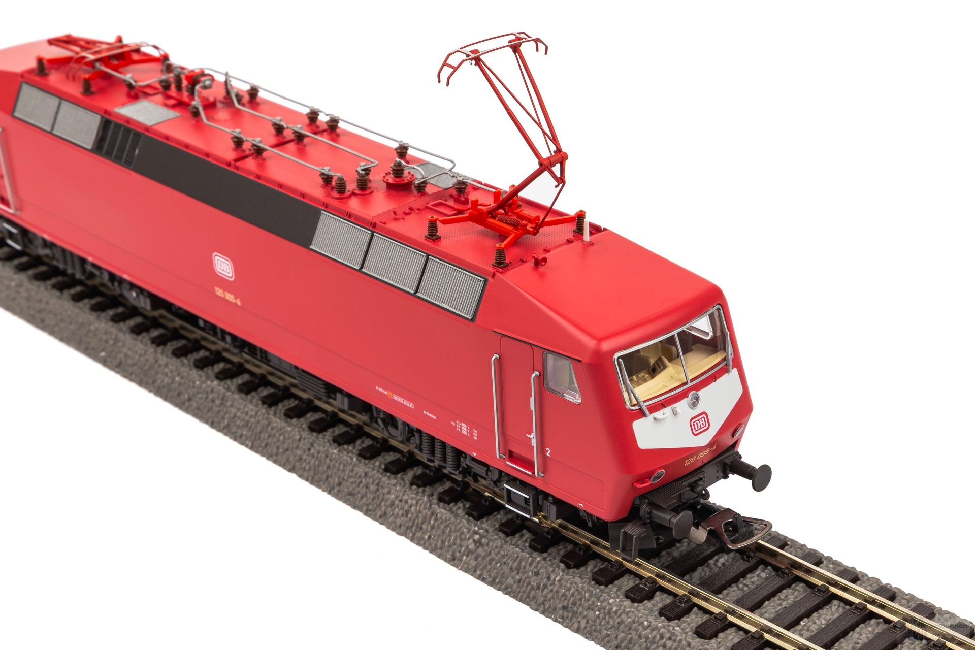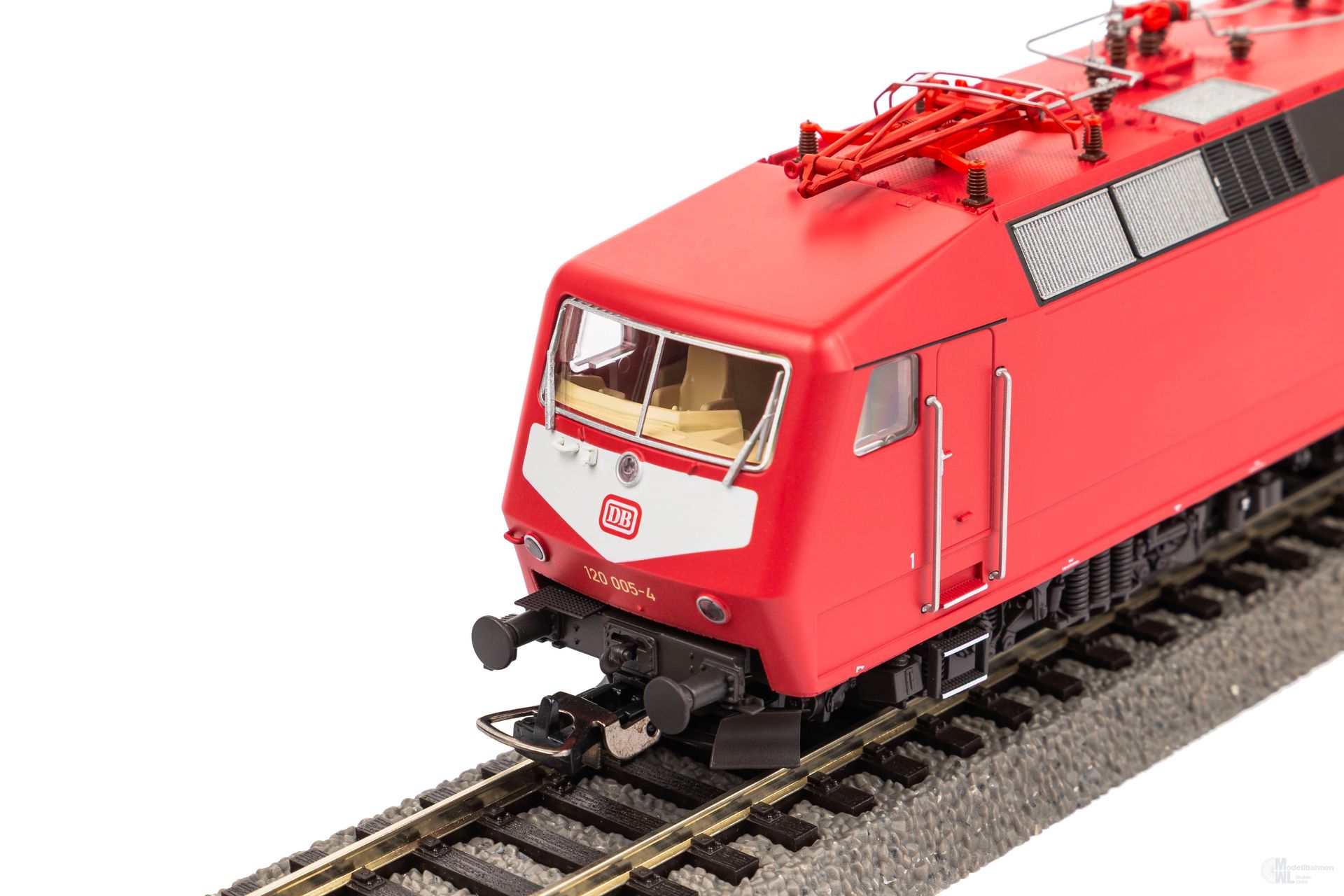 Neuheit 2025: Elektrolokomotive BR 120 der Bundesbahn im Zustand der späten Epoche mit runden Puffern. Das PIKO Modell der attraktiven Baureihe 120 überzeugt durch feinste Lackierung und Bedruckung, die exakte Umsetzung der markanten Gehäuseform, angesetzten Griffstangen, scharf gravierte Drehgestellblenden und filigrane Metall-Pantographen. Der fünfpolige Motor sorgt mit zwei Schwungmassen für ausgezeichnete Fahreigenschaften. Der LED-Lichtwechsel erfolgt fahrtrichtungsabhängig weiß/rot mittels LEDs. Die serienmäßig eingebaute Führerstandsbeleuchtung und die fahrtrichtungsabhängig funktionierenden Schlusslichter sind mit einem PluX22-Decoder digital schaltbar. Hierfür steht beim Analogmodell auf der aufgeräumten Platine eine Plux22-Schittstelle zur Verfügung. Zudem ist die Sound-Nachrüstung vorbereitet.