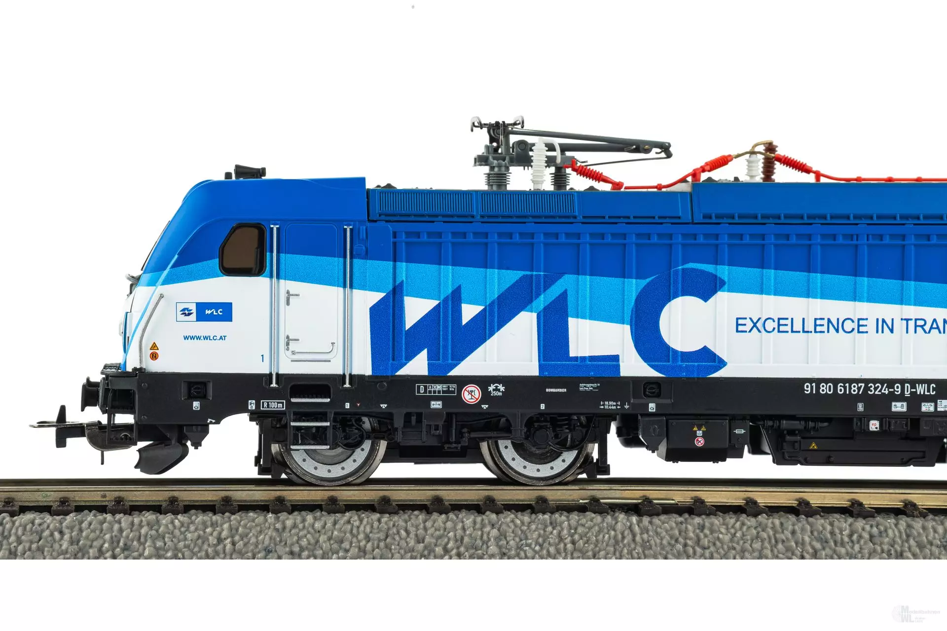 Neuheit 2025: Druckvariante der BR 187 im Design der WLC in Epoche VI. Das Modell verfügt ab Werk über einen passenden PSD XP Sound-Decoder mit größtmöglichem Lautsprecher. Das Modell trägt das Gütezeichen fits mfx®. Um Digitaldecoder für alle Nutzer der aktuellen Märklin Digitalzentralen zuverlässig einsetzbar zu machen, wurde gemeinsam mit Märklin und anderen Herstellern ein neues Gütezeichen „fits mfx®“ eingeführt. Dieses kann nur von Digitaldecodern verwendet werden, die einen speziellen mfx®-Test durchlaufen und vollumfänglich bestanden haben. Diese Decoder und auch die Lokomotiven in denen sie verbaut sind, tragen das Gütezeichen „fits mfx®“, welches die uneingeschränkte mfx® Funktionalität zertifiziert. Das bedeutet, dass nunmehr auch PIKO Produkte mit dem „fits mfx®“ Logo die vielfältigen Funktionen von mfx® vollständig unterstützen.