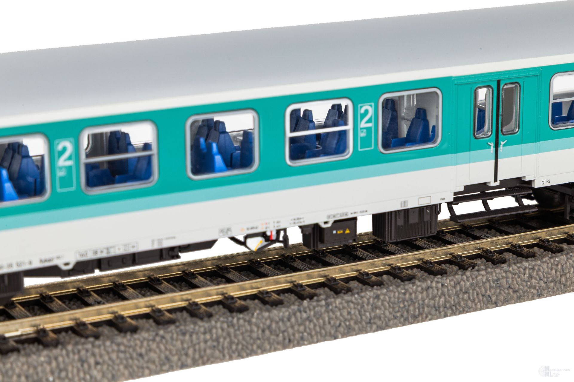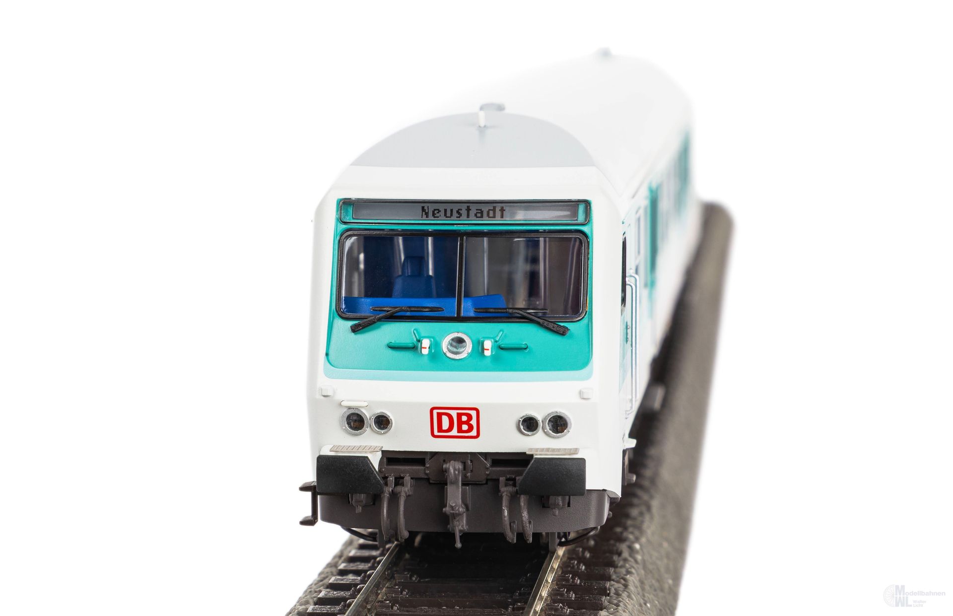 Neuheit 2025: Mit der Neukonstruktion des Halberstädter Mitteleinstiegssteuerwagens und den passenden Personenwagen in mintgrüner Farbgebung der DB AG in Epoche V präsentiert PIKO weitere Klassiker im Expert Personenwagensortiment. Die markante Kopfform des Steuerwagens wurde präzise ins Modell übertragen. Durch die glasklaren, bündig eingesetzten Fenster fällt der Blick auf die detailliert ausgeführte Einrichtung im Führerstand und Fahrgastraum. Feine Türennachbildungen, kleinteilig ausgeführte Drehgestelle und zahlreiche freistehend montierte Teile, wie Trittstufen, Scheibenwischer und Griffstangen, runden den Gesamteindruck ideal ab. Das Modell ist für die Nachrüstung einer Innenbeleuchtung vorbereitet. Zudem verfügt der Steuerwagen über eine beleuchtete Zugzielanzeige sowie eine digital schaltbare Beleuchtung im Führerstand.