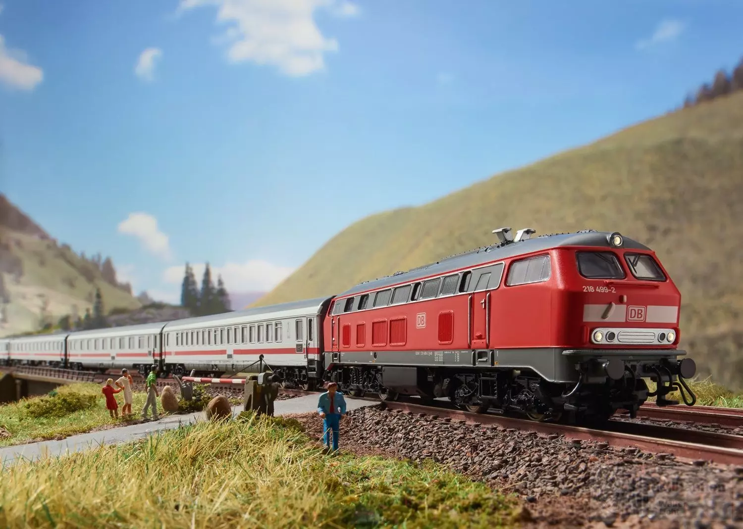 Wie keine andere Diesellok prägte die Baureihe 218 in den vergangenen 40 Jahren das Bild der DB abseits der elektrifizierten Hauptstrecken. Sowohl in Doppeltraktion vor schweren InterCity-Zügen im Allgäu und auf der Marschbahn oder im Regionalverkehr vor Wendezügen – die 218er bestimmten ganz maßgeblich das Bild der Zugförderung mit Dieselloks. Die Loks der Baureihe 218 stellten das Ende der Entwicklung der „V 160-Familie“ dar. Mit ihnen konnte die Dampfheizung problemlos durch eine elektrische Zugheizung ersetzt werden. Nach der Entwicklung eines Dieselmotors mit einer Leistung von 2.500 PS (1.839 kW) konnte damit zusätzlich zur Traktion auch der Generator für die elektrische Heizung betrieben werden, was einen Hilfsdieselmotor überflüssig machte. 1968/69 beschaffte die DB von Krupp zunächst zwölf Probeloks 218 001-012 mit dem neuen Motor. Nach erfolgreicher Bewährung folgten ab Frühjahr 1971 die 398 Serienmaschinen als 218 101-398 und 400-499, an deren Bau neben Krupp auch Krauss-Maffei und Rheinstahl-Henschel beteiligt waren. Die zuvor nicht aufgeführte 218 399 bildete einen „Quereinsteiger“, denn dabei handelt es sich um die 1975 verunfallte 215 112, die mit elektrischer Heizung wiederaufgebaut und dann folgerichtig als 218 399 bezeichnet wurde. Natürlich wurden während der langen Beschaffungszeit zahlreiche Detailverbesserungen an der Serie vorgenommen. Baute man anfangs noch ausschließlich den 2.500 PS-Motor ein, erhielten die späteren Lieferserien und damit über die Hälfte der Maschinen einen stärkeren Motor mit 2.800 PS (2.059 kW) Leistung. Zunächst baute man nur deutsche Motoren von MTU ein, später auch Motoren des französischen Herstellers SEMT Pielstick (Lizenzbau KHD). Ab 1981 kamen zusätzliche Abgashutzen auf dem Dach hinzu zur Vorbeileitung der Abgase an der Fahrleitung und Minimierung der Abgasbelästigung der Fahrgäste. Dabei kennzeichnen nebeneinander angeordnete Hutzen die MTU-Zwölfzylindermotoren (TB10/TB11), diagonal angeordnete Hutzen dagegen die Sechzehnzylindermotoren (Pielstick, MTU 4000).Zwischenzeitlich haben sich ihre Reihen erheblich gelichtet. Mit einem Dienstalter von mindestens gut 40 Jahren wurden inzwischen viele Maschinen, vor allem der älteren Bauserien ausgemustert. Nennenswerte Einsätze verzeichnen noch die Werke Niebüll, Mühldorf, Kempten und Ulm. Im letzteren Werk ist seit Dezember 2008 auch die 218 499 beheimatet, die im Juni 1979 zur DB gelangte und damit die letzte von der Bundesbahn beschaffte Großdiesellok überhaupt bildete. Wie bei ihren Schwestern der letzten Serie (218 485-498) war auch bei ihr zunächst ein Pielstick-Dieselmotor des Typs „16 PA4 V 200“ eingebaut und um 1985 durch diagonal angeordnete Hutzen ergänzt. Im Zuge einer Revision in 1995 wurde der Pielstick durch den gleichstarken MTU-Motor (12V 956 TB 11) mit nun zwei parallelen Abgashutzen ersetzt. Dabei behielt sie ihre Behr-Kühlanlage in V-Form, was durch den großen Gitterrost auf dem Dach erkennbar ist. Glanzleistungen der Ulmer Maschinen und damit auch der 218 499 bildeten zum Teil bis heute die Intercity-Zugpaare IC 2012/2013 „Allgäu“ zwischen Stuttgart und Oberstdorf, IC 2084/2085 „Nebelhorn“ zwischen Augsburg und Oberstdorf sowie zeitweise IC 118/119 zwischen (Stuttgart –) Ulm und Lindau.