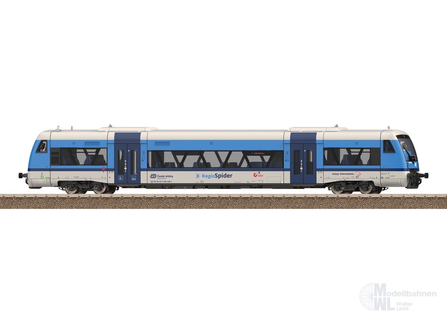 Vorbild: Dieseltriebwagen vom Typ Regio Shuttle RS1 als Baureihe 840 der Tschechischen Staatsbahn (ČD). Ausführung mit Schraubenkupplung, Puffern und tief liegender Zugzielanzeige. Lichtgrau/Himmelblaue Grundfarbgebung. Betriebsnummer 840 006-1. Betriebszustand ab 2020.