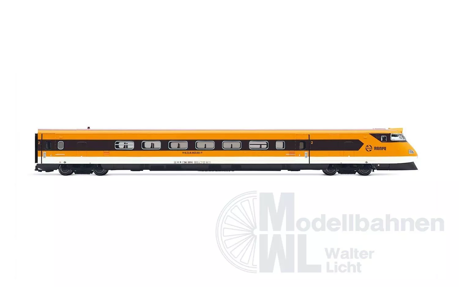 RENFE, Hochgeschwindigkeits-Neigezug Rh. 443, mit braunem Dach und modernem Logo