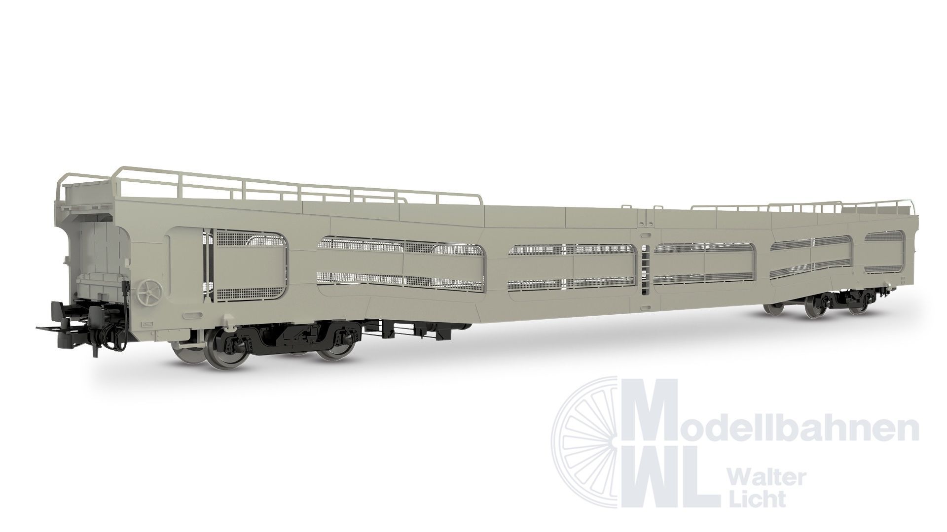 RENFE, 4-achs. Autotransportwagen der Gattung DDMA, weiße Farbgebung mit seitl. Schutzgittern