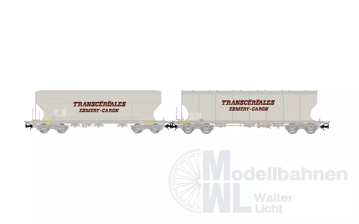 SNCF, 2-tlg. Set Getreidesilowagen „Transcéréales – Esmery-Caron“, mit flachen + runden Wänden
