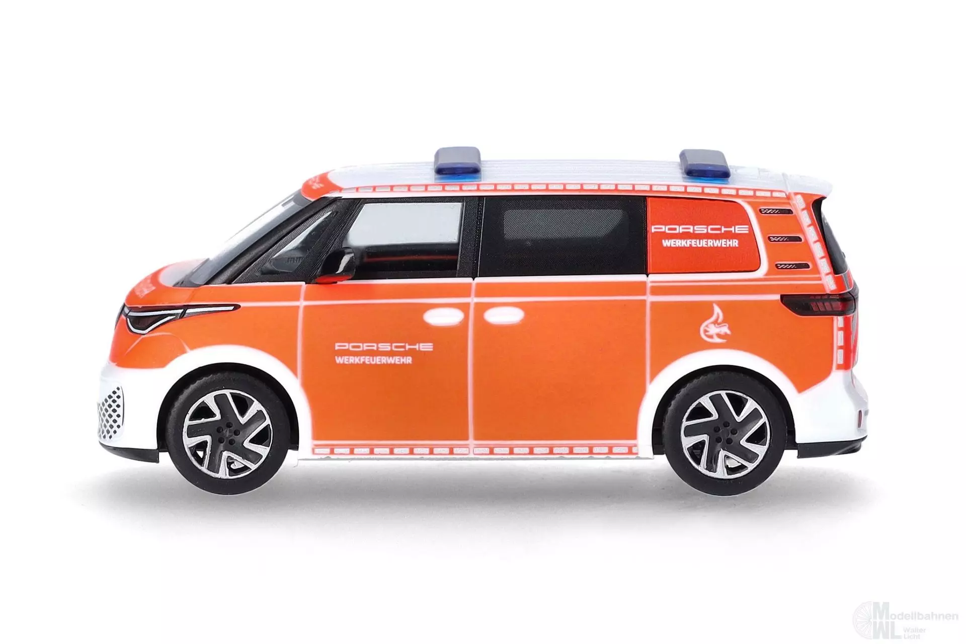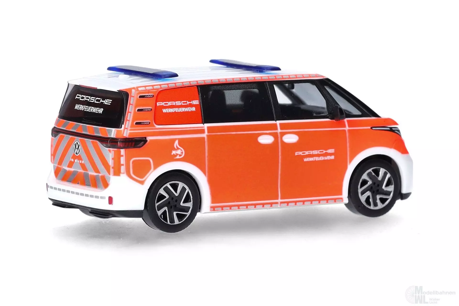 Die Werkfeuerwehr der Dr. Ing. h.c. F. Porsche AG in Stuttgart unterhält einen eigenen Fuhrpark. Ein brandneues Fahrzeug darin ist diese VW ID. Buzz mit ansprechender Bedruckung.