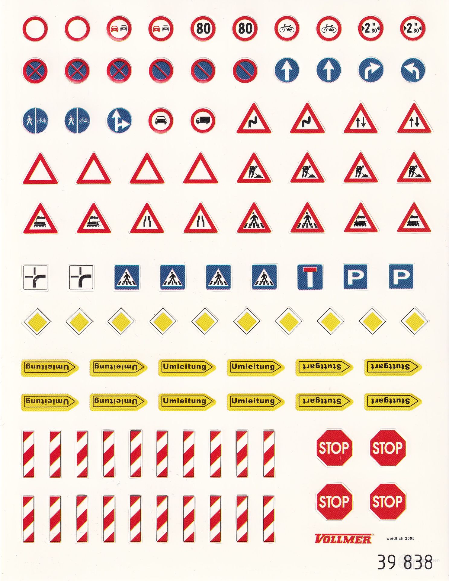 Durch die beiliegenden Aufkleber können Sie selbst bestimmen, welches Schild Sie benötigen. Eine schöne Ergänzung zum Viessmann CarMotionSystem. Bestehend aus zehn Schildern und einem Deko-Bogen mit Schildern zum Aufkleben.