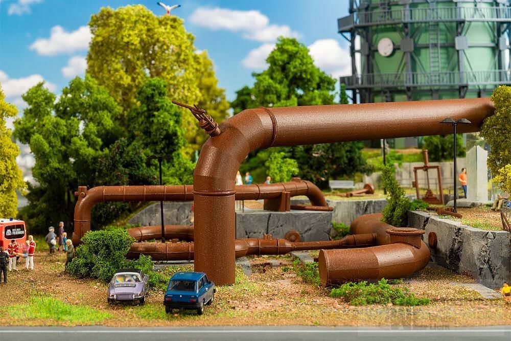 Mit diesem vielseitigen Rohrleitungs-Set wird die Gestaltung einer realistischen Schwerindustrielandschaft zum Kinderspiel! Unterschiedlich lange, gerade und gebogene Rohrleitungen in verschiedenen Durchmessern ermöglichen es Ihnen, im Handumdrehen ein authentisches Rohrsystem in Ihrer Miniaturwelt zu erschaffen. Die frei kombinierbaren Teile bieten unzählige Möglichkeiten und lassen sich zudem perfekt mit dem »Großen Rohrleitungs-Set« (Art. 180328) und dem Set »Gasometer mit Rohrleitungen« (Art. 130157) erweitern. So entsteht eine beeindruckende Industrieanlage, die Ihre Modelllandschaft bereichert!