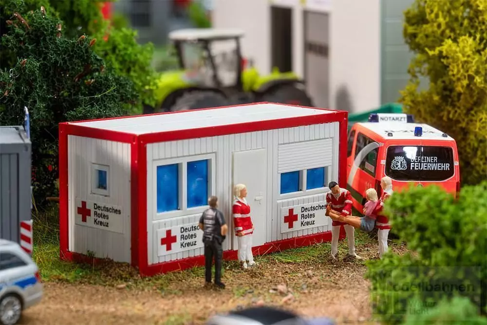 Immer und überall aktiv! Mit der mobilen Wache und dem DRK-Container wird die Miniatur-Rettung zum Kinderspiel. Bringen Sie etwas Realismus in Ihr Diorama und erwecken Sie Ihre Modellstadt zum Leben!