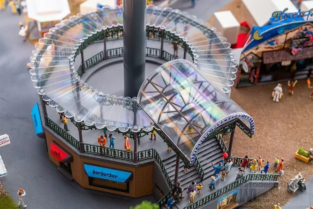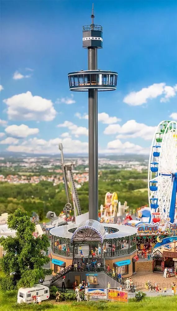 50 Jahre Europa-Park! Imposant erhebt sich der 75 Meter hohe Aussichtsturm Rust über den 1974 eröffneten Europa-Park und blickt auf das geschäftige Treiben unter ihm herab. Seit seiner Eröffnung im Jahr 1983 hat der Turm seinen festen Platz im Park gefunden. In der geräumigen Kabine können bis zu 50 Personen die atemberaubende Aussicht genießen. Nach dem Vorbild des echten Turms im Ruster Europa-Park gestaltet, ist dieses Miniaturmodell fast ebenso beeindruckend wie das Original und bringt ein Stück Freizeitpark-Atmosphäre in jede Modelllandschaft.