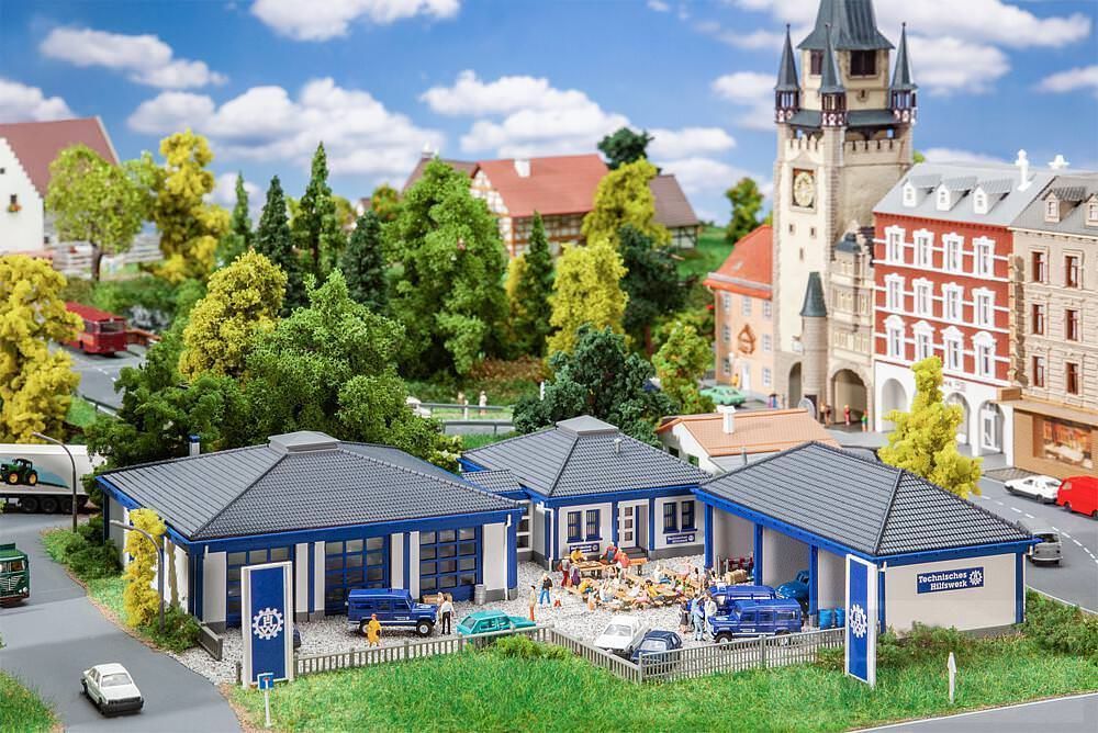 Produktinformationen "Faller 231725 - THW-Gebäude mit Fahrzeughalle N 1:160"