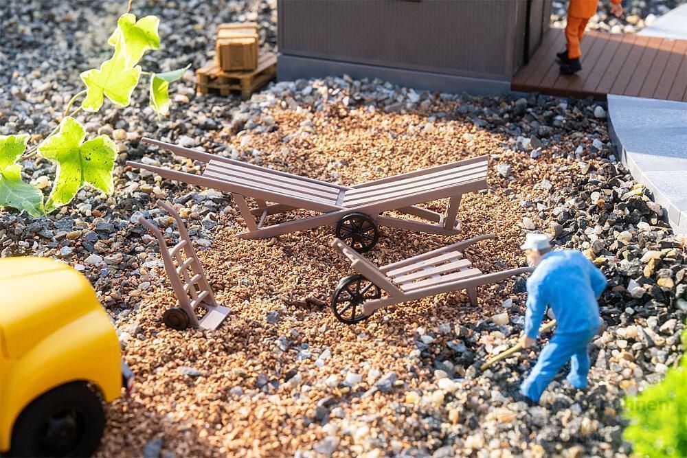 Dieses Set umfasst drei detailreiche Schubkarrenmodelle, die perfekt auf das Güterverladepersonal (Art. 331527) abgestimmt sind. Sie eignen sich ideal zur Gestaltung realistischer landwirtschaftlicher und industrieller Szenen der früheren Epochen.