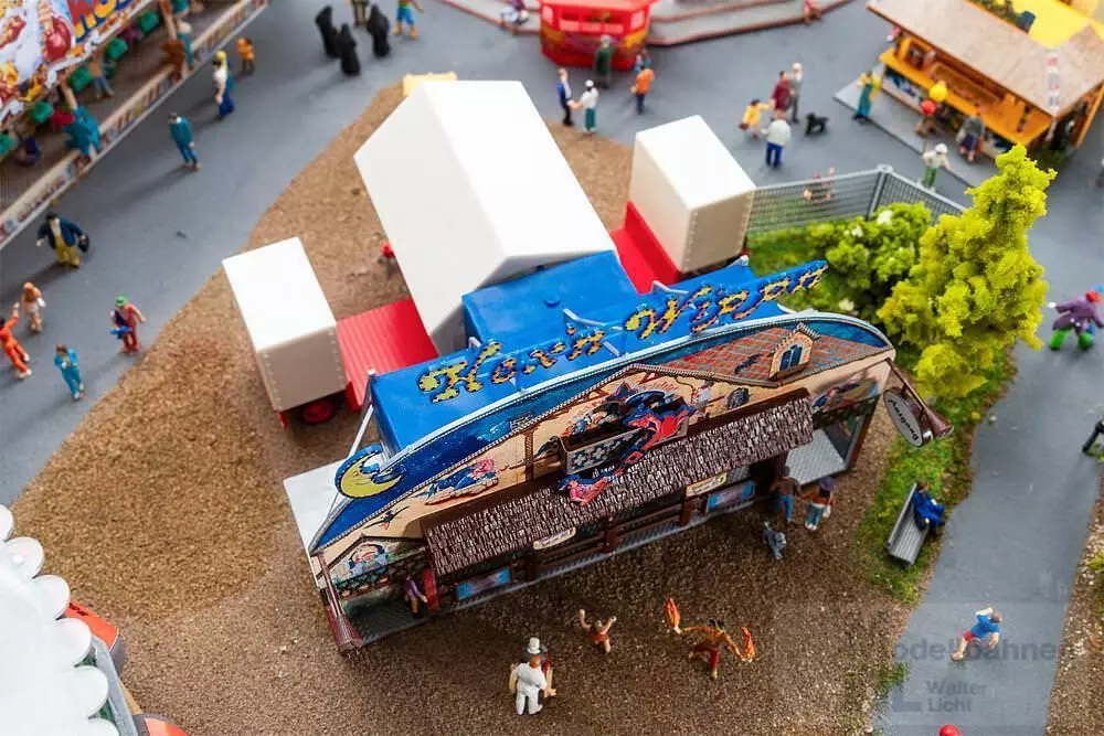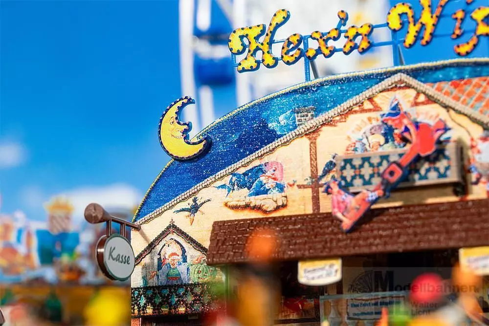 Es ist wie verhext! Diese Kirmesattraktion wird garantiert den ein oder anderen Miniaturbesucher ins Staunen versetzen. Das Modell ist nach dem echten Vorbild der »Hex’n Wipp’n« gestaltet, einem faszinierenden Fahrgeschäft der Schaukelart, das oft auch als drehbares Haus bezeichnet wird. Besonders beliebt ist es auf dem Münchner Oktoberfest. Mit einer solchen Attraktion wird das Miniaturkirmeswunder zum echten Erlebnis! Ein 16 V Bastelmotor liegt dem Bausatz bei.
