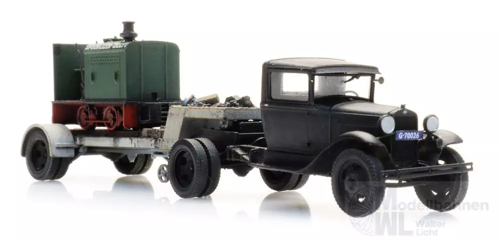 Produktinformationen "ARTITEC b.v. 387.556 - Ford AA Sattelauflieger Deutz Lokomotive Fertigmodell H0 1:87"