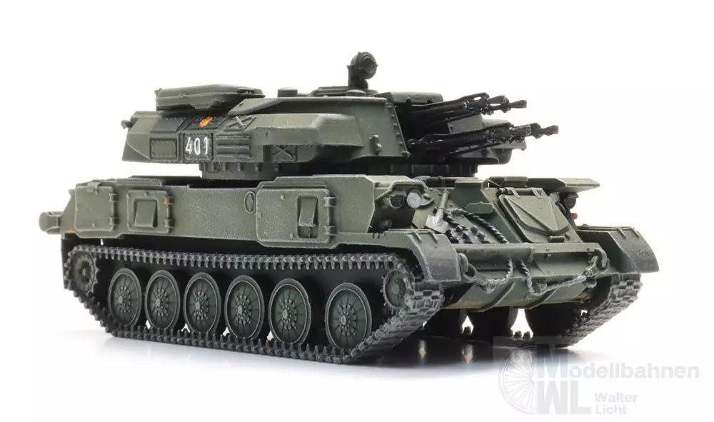 Produktinformationen "ARTITEC b.v. 6870726 - DDR ZSU 23-4 Shilka Eisenbahntransport Fertigmodell H0 1:87"