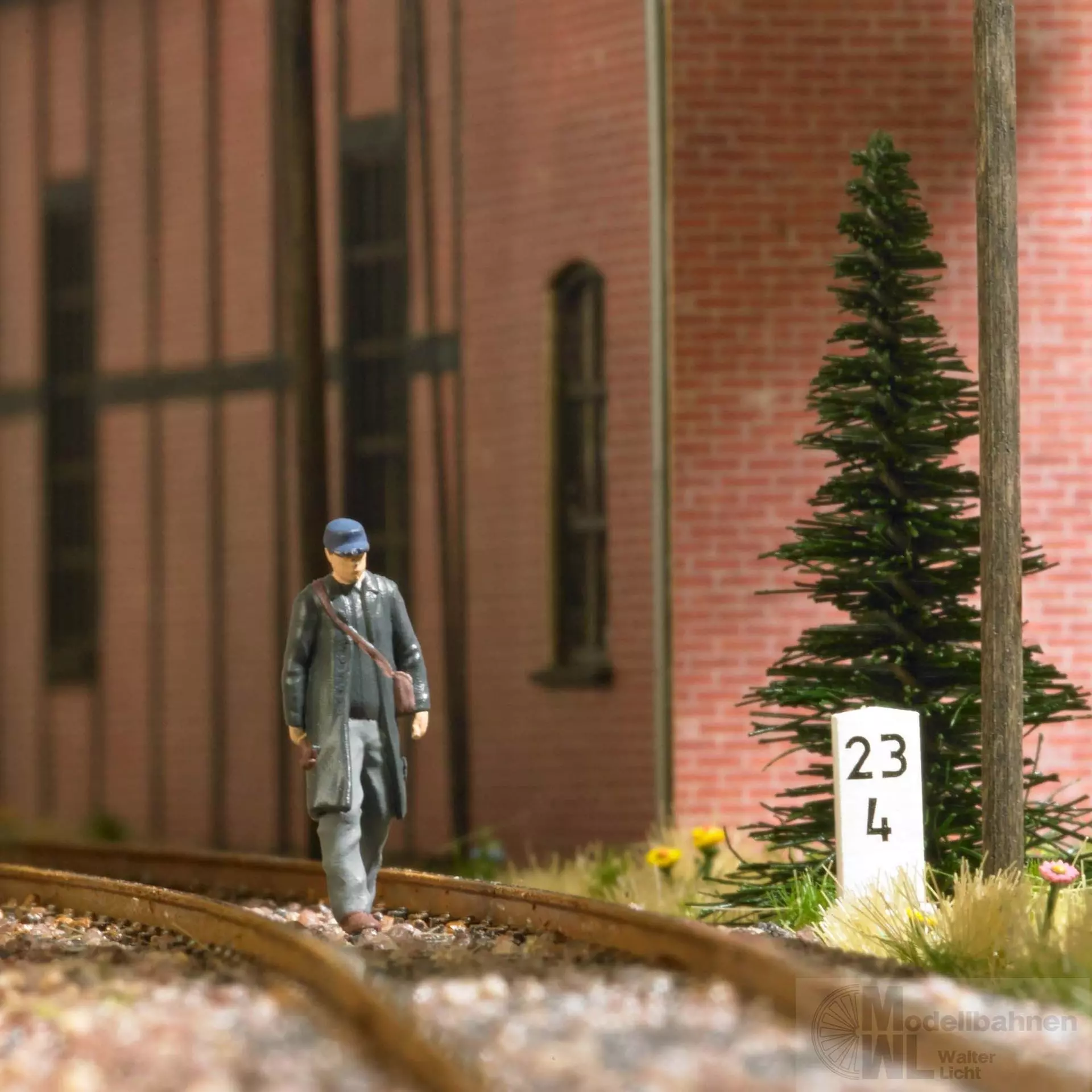 Ein Streckenläufer unterwegs auf Kontrollgang entlang der Gleise. Action Set mit Figur,