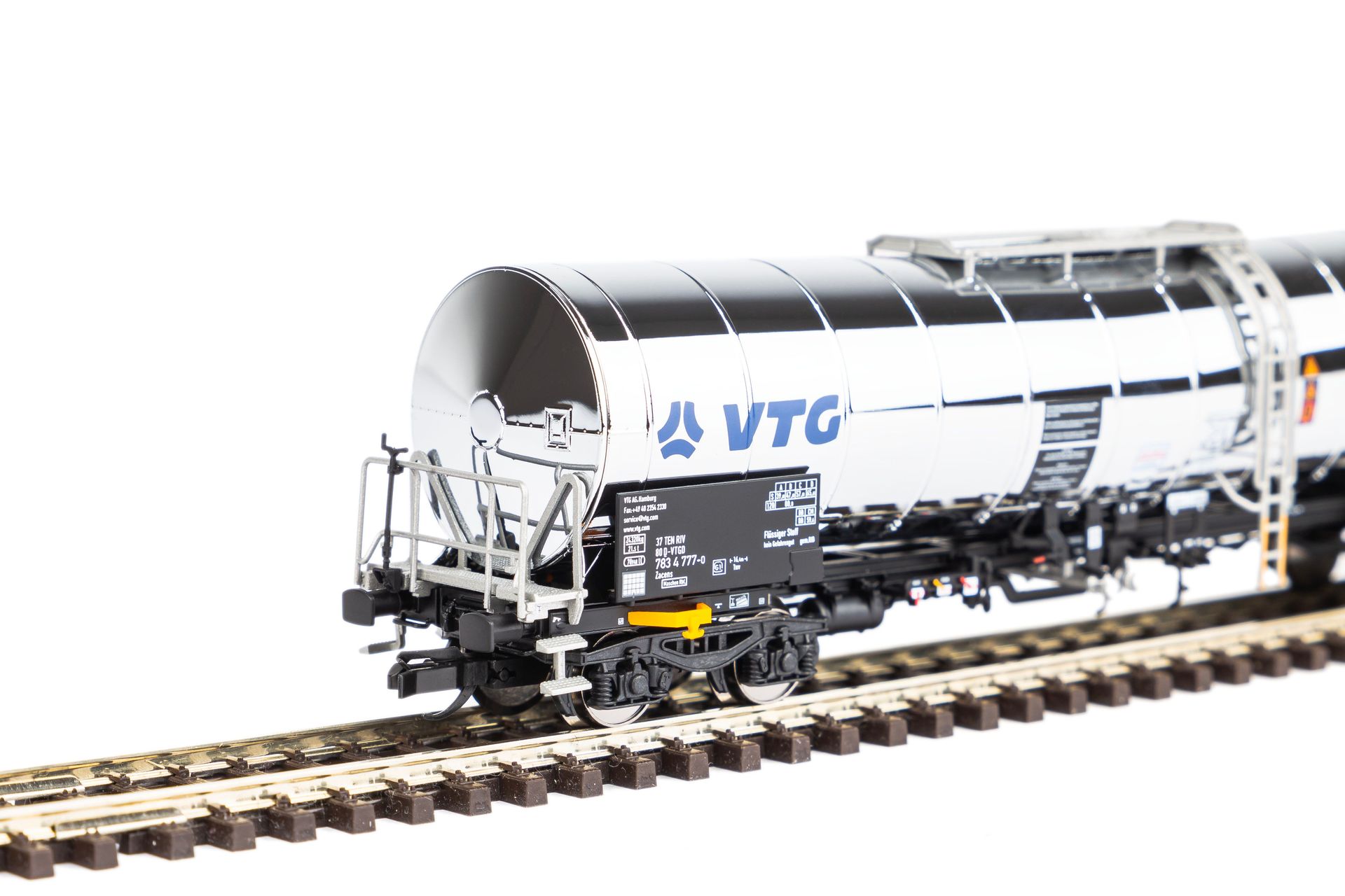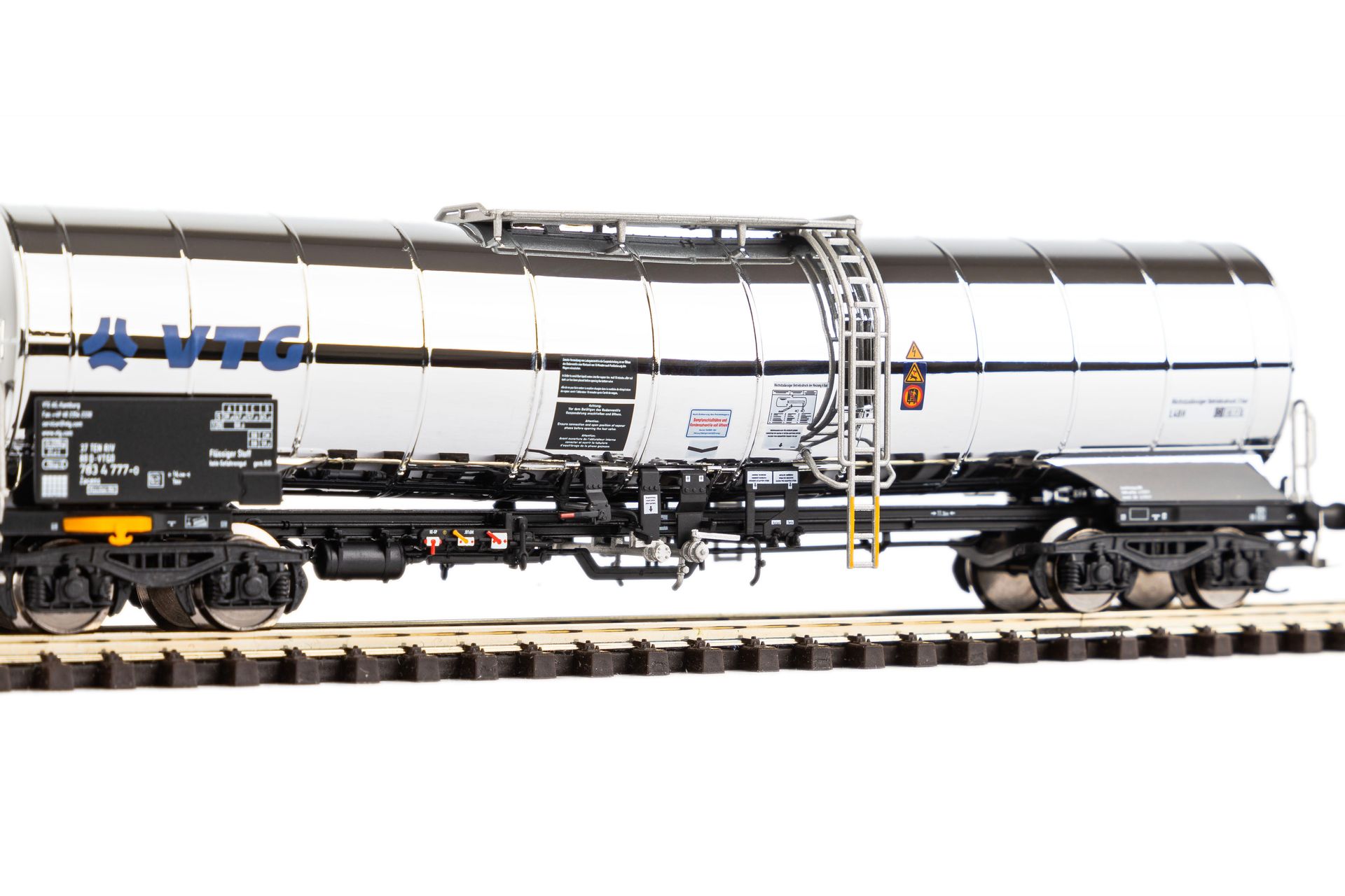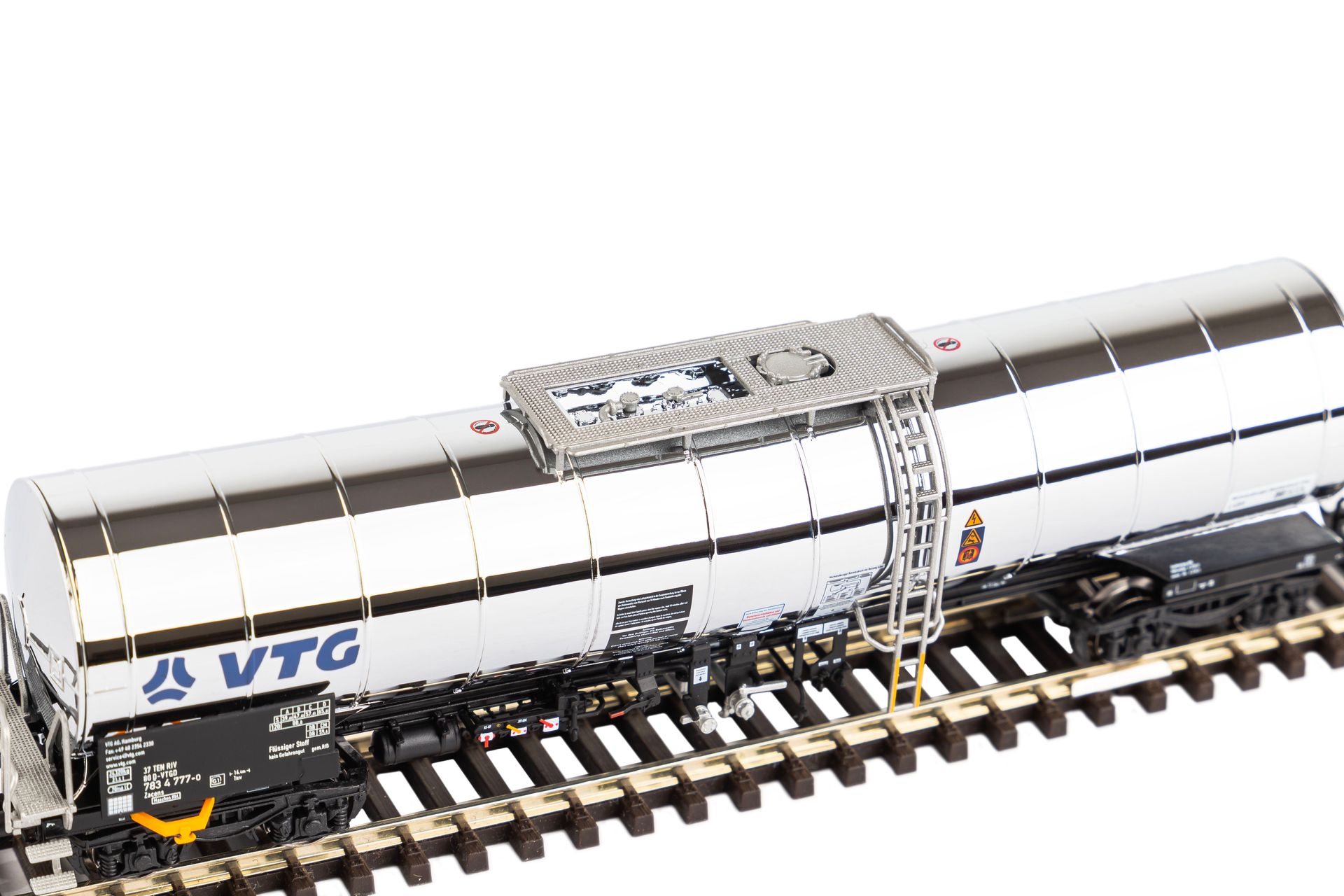 Neuheit 2025: Für den Transport von Chemikalien unterschiedlichster Art, ist der mit einem Kessel aus Chromnickelstahl (V4A) ausgestattete Wagen ein unverzichtbares und modernes Transportmittel für viele Betriebe. Diese Wagen sind, einerseits durch Isolierung, andererseits durch eine Heizung, für den Transport verschiedenster Stoffe konzipiert. Das PIKO Modell dieses modernen, vierachsigen Chemiekesselwagens überzeugt durch seine hohe Detaillierung im Maßstab 1:120! Ob feine Leitern, freistehende Griffstangen und Geländer oder der detailliert ausgeführte Wagenboden - das PIKO Modell lädt zum Staunen ein. Abgerundet wird der Gesamteindruck durch den verchromten Hochglanzkessel mit konturenscharfer Bedruckung im Design eines VTG Wagens.Dieser Fahrzeugtyp ist nicht nur als Einzelfahrzeug in jedem gemischten Güterzug ein Blickfang, sondern lässt auch die Bildung attraktiver Ganzzüge zu.