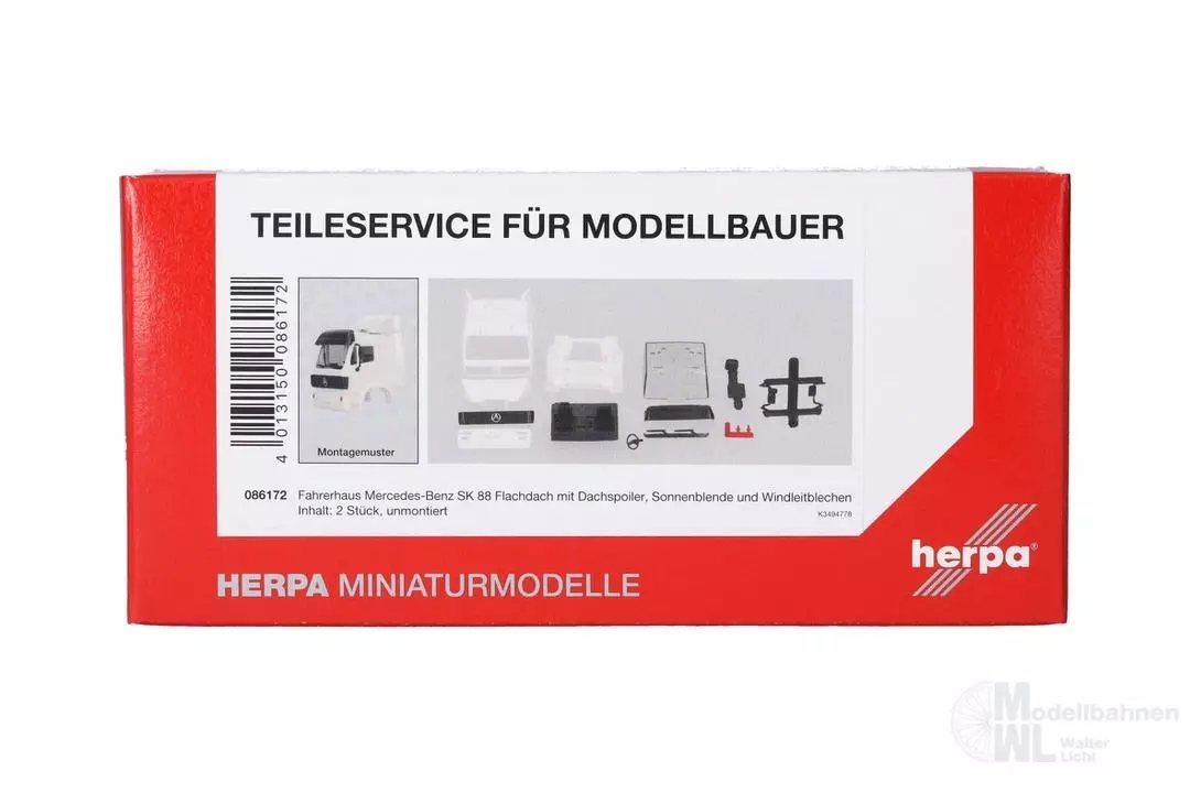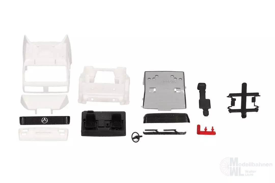 Mit diesem Ersatzteilset können Sie problemlos, dank der Herpa-Stecktechnik, Modelle nach ihren Wünschen umbauen. In diesem Set befinden sich Teile um zwei komplette Fahrerhäuser der Mercedes-Benz SK 88 mit Flachfach, Windleitblechen und Dachspoiler bauen zu können. Ein passendes Fahrgestell für eine 2achsige Zugmaschine wäre 084871.