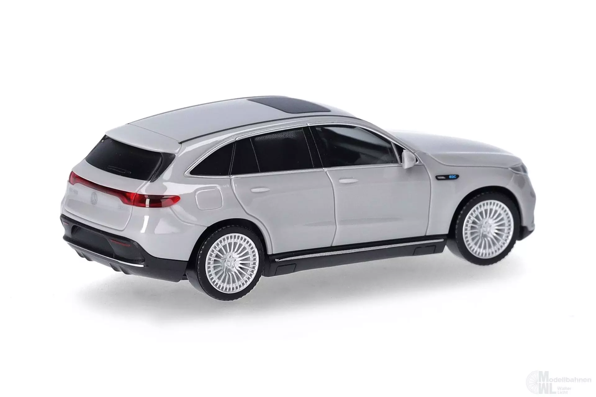 Der Mercedes-Benz EQC, ein voll elektrisch betriebenes Fahrzeug, ist beliebt unter den aktuelleren Fahrzeugen im Herpa-Sortiment. Das Fahrzeug ist in wundervollem signalgrau umgesetzt und detailreich 87-fach verkleinert.