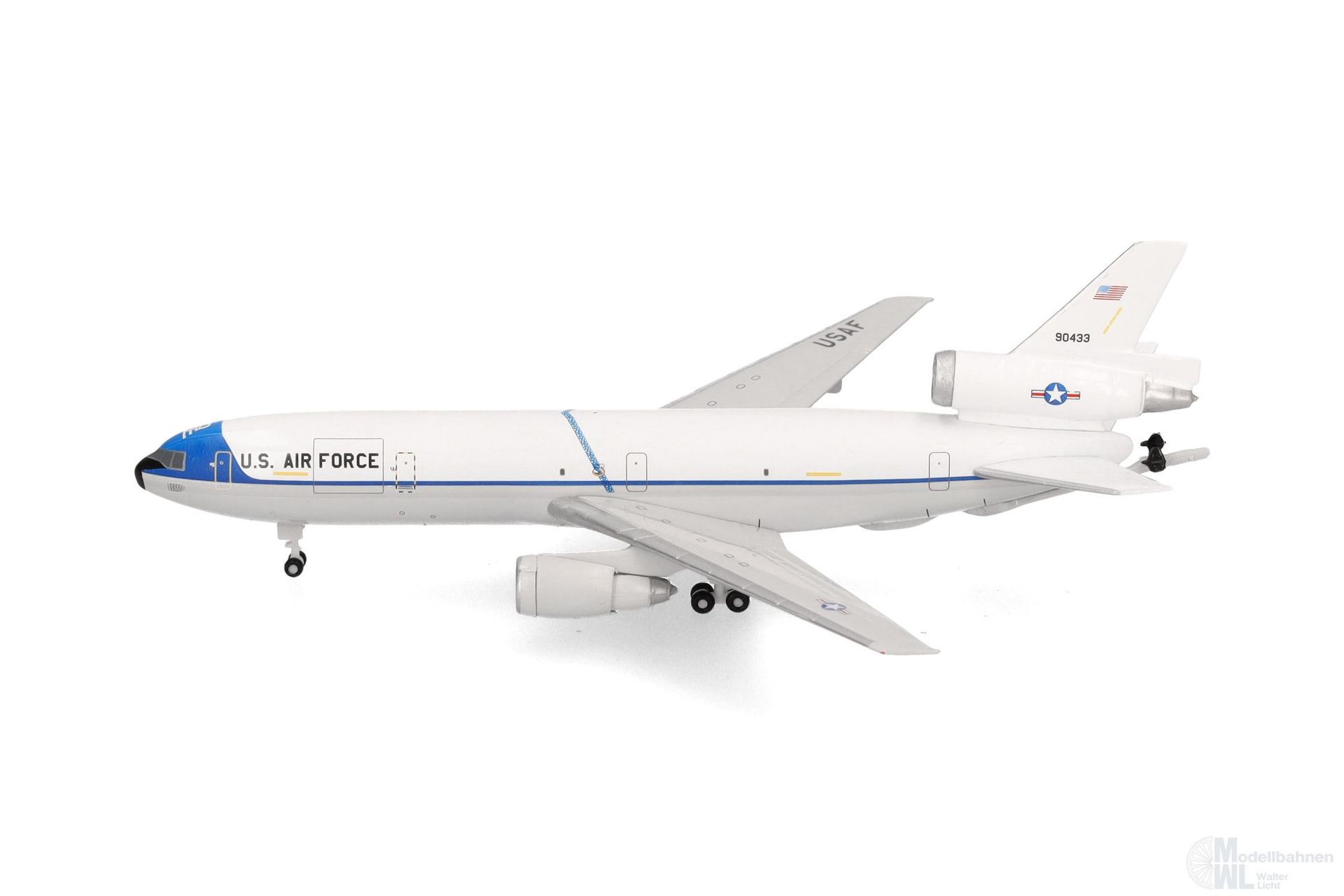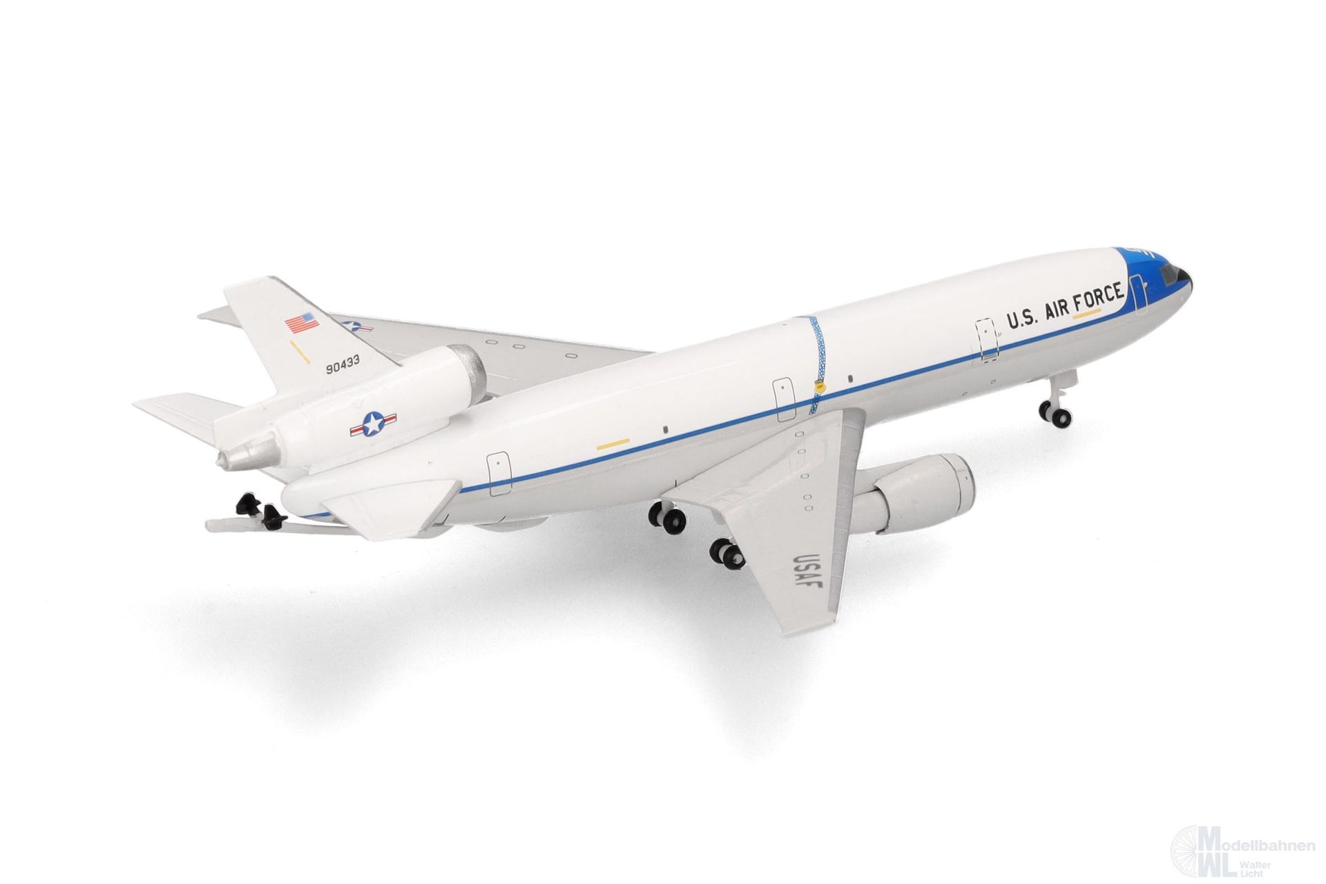 Am 26. September 2024 verließen die letzten beiden KC-10 Extender den Luftwaffenstützpunkt Travis im US-Bundesstaat Kalifornien. Seit 1980 war die KC-10 ein wichtiger Bestandteil der amerikanischen und alliierten Streitkräfte und flog Lufttransport- und Luftbetankungsmissionen rund um den Globus. Die KC-10 konnte doppelt so viel Treibstoff mitführen wie die ältere KC-135 und gleichzeitig fast genau so viel Fracht befördern wie die C-17 Globemaster. Zum Gedenken an die Ausmusterung bringt Herpa eine kleine, auf drei Modelle limitierte Serie des Dreistrahlers heraus. Das erste Modell trägt die Abzeichen der 60th Air Mobility Wing, der letzten Einheit der US-Luftwaffe, die den Extender eingesetzt hat (Art.Nr. 538367). Neben einer KC-10 in den originalen Auslieferungsfarben der Königlich Niederländischen Luftwaffe (Art.Nr. 538374) wird auch die allererste von 60 für die US-Luftwaffe gebauten KC-10 mit der Seriennummer 79-0433 in einer limitierten Auflage in der originalen blau-weißen Farbgebung aufgelegt. Sie wurde schließlich 2022 ausgemustert und ist heute im Air Mobility Command Museum auf der Dover Air Force Base im US-Bundesstaat Delaware zu bewundern.