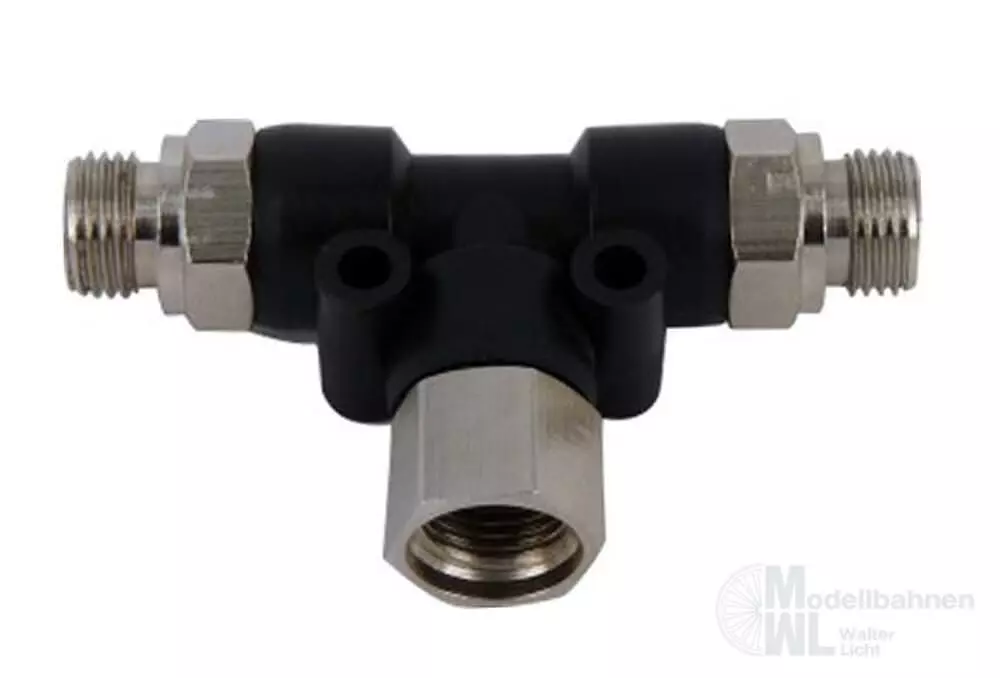2-Fachverteiler, zum Anschluss von zwei Airbrushes an einen Kompressor. Anschlüsse jeweils 1/8 Zoll.