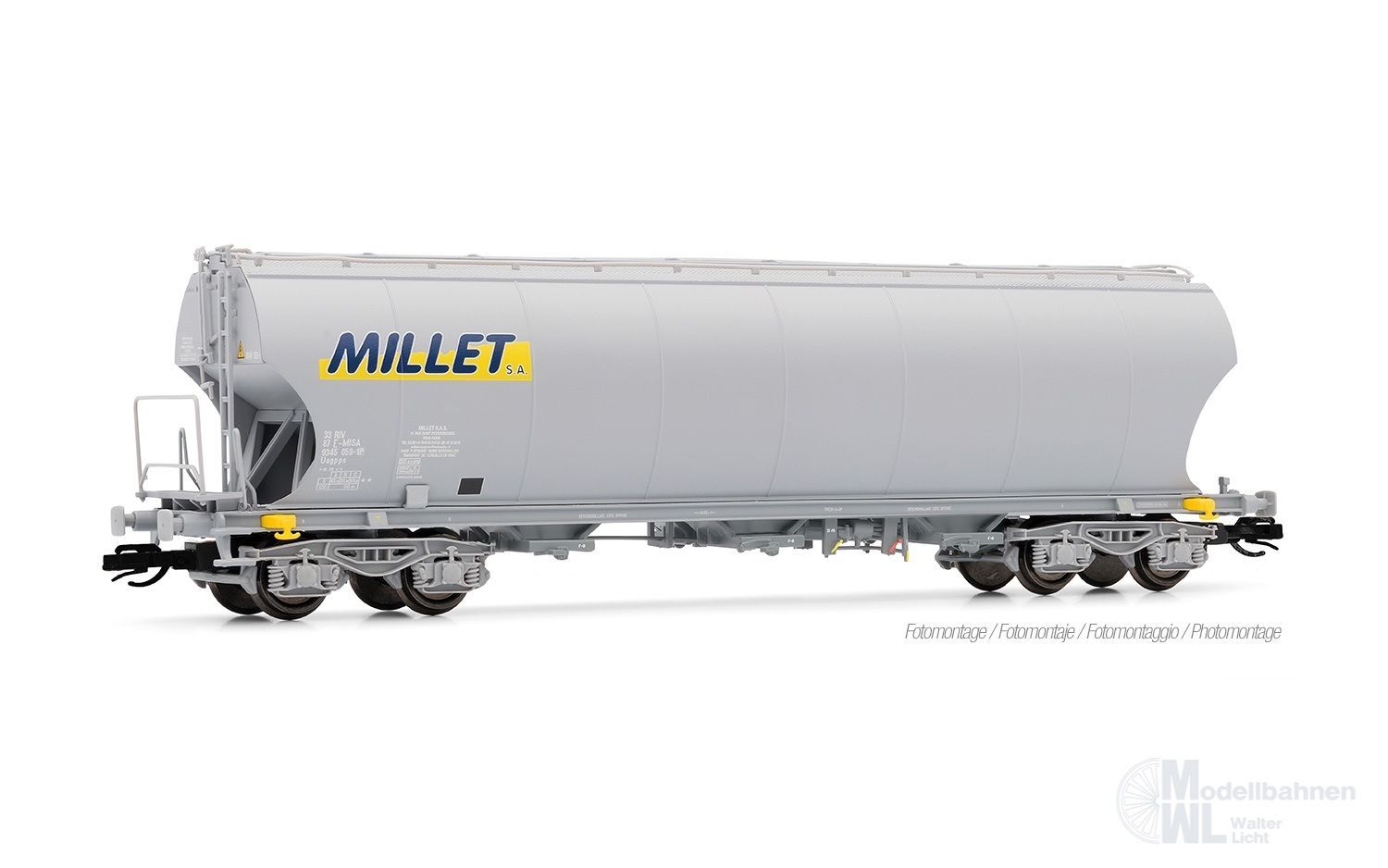 F-MISA, 2-tlg. Set 4-achs. Getreidesilo-Wagen mit runden Seitenwänden, „MILLET”, grau Lackierung