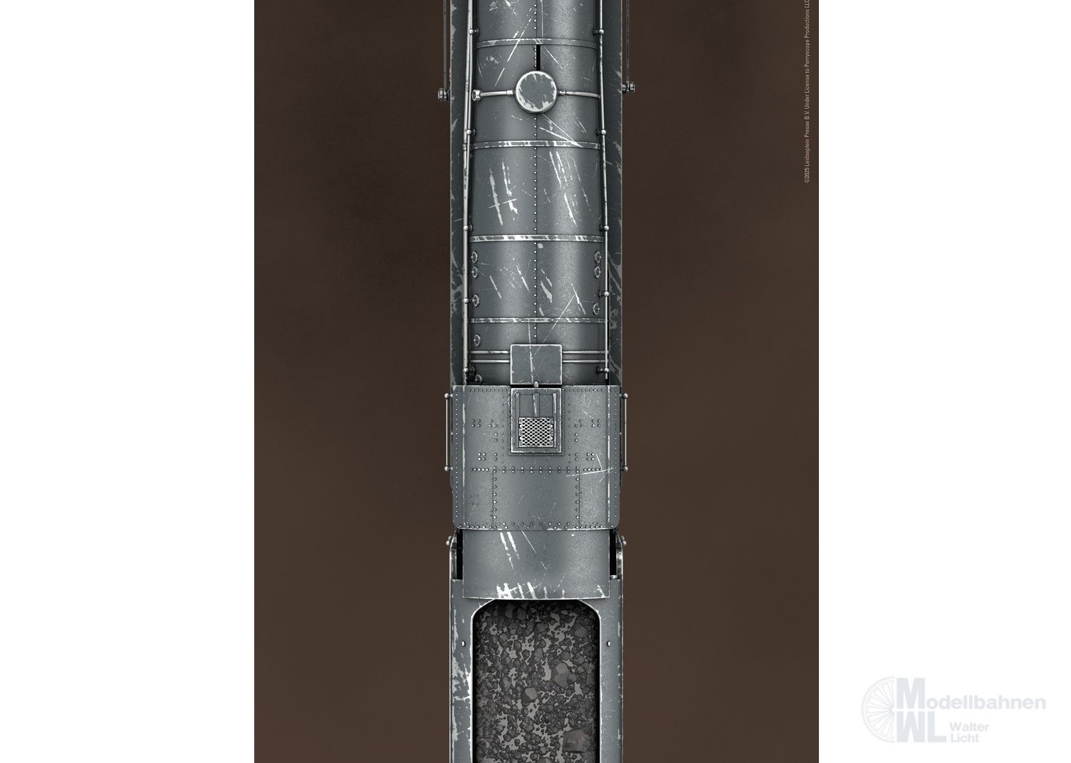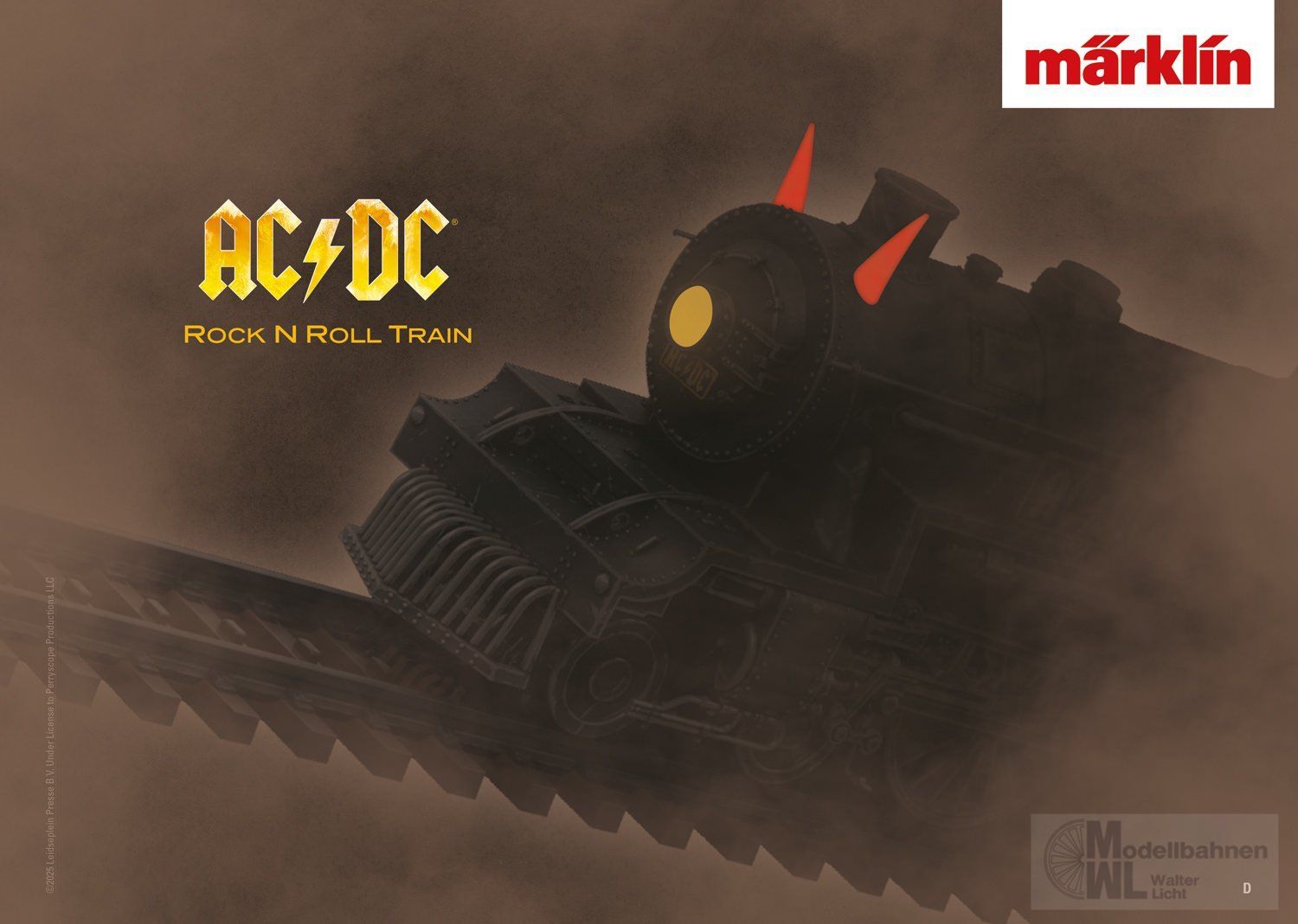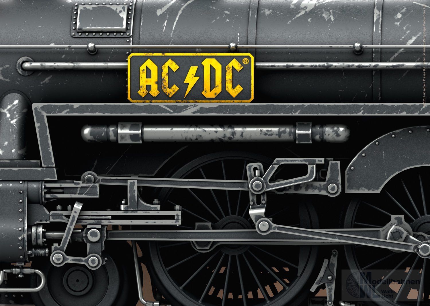 Modell: Mit Digital-Decoder mfx+ und umfangreichen Licht- und Soundfunktionen. Geregelter Hochleistungsantrieb mit Schwungmasse im Kessel. Drei Achsen angetrieben. Haftreifen. Lokomotive und Tender weitgehend aus Metall. Serienmäßig eingebauter Raucheinsatz, mit geschwindigkeitsabhängigem, dynamischem Rauchausstoß, digital schaltbar. Frontscheinwerfer mittig auf der Rauchkammertür der Lok und eine Lampe an der Tenderrückseite konventionell in Betrieb, digital schaltbar. Die Beleuchtung des Frontscheinwerfers kann auf rot umgeschaltet werden. Die AC/DC typischen Teufelshörner sind beleuchtet und können digital zugeschaltet werden. Führerstandsbeleuchtung und Feuerbüchsenflackern digital schaltbar. Beleuchtung des Tender-Durchgangs digital schaltbar. Beleuchtung mit wartungsfreien warmweißen und roten Leuchtdioden (LED). Verstellbare Kurzkupplung mit Kinematik zwischen Lok und Tender. Am Tender kinematikgeführte Kurzkupplung mit NEM-Schacht. Pufferhöhe an Lok und Tender nach NEM. Bremsschläuche, Schraubenkupplungsimitationen und geschlossene Zylinderdeckel liegen bei. Länge über Puffer ca. 24,5 cm.