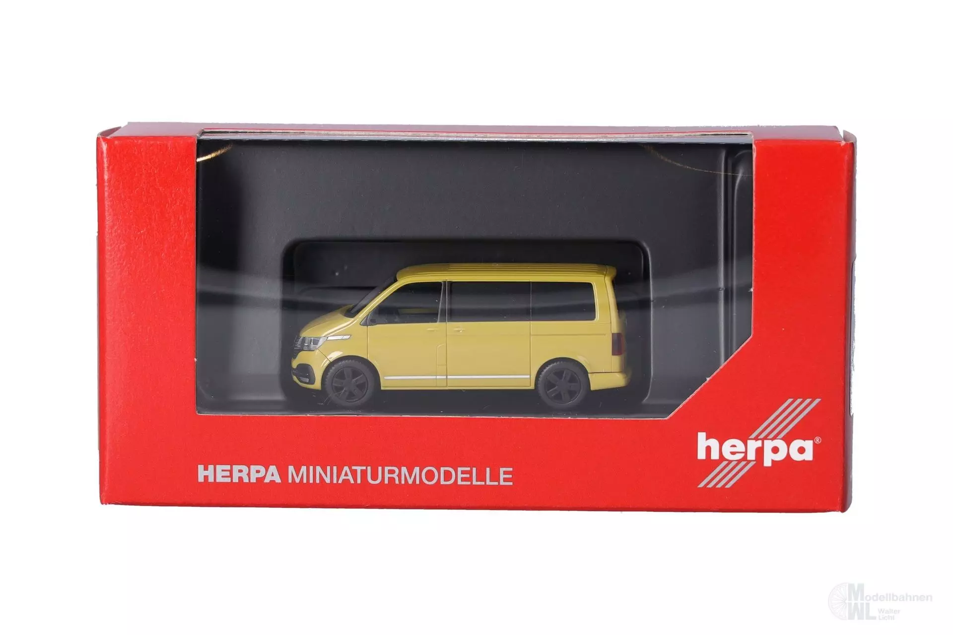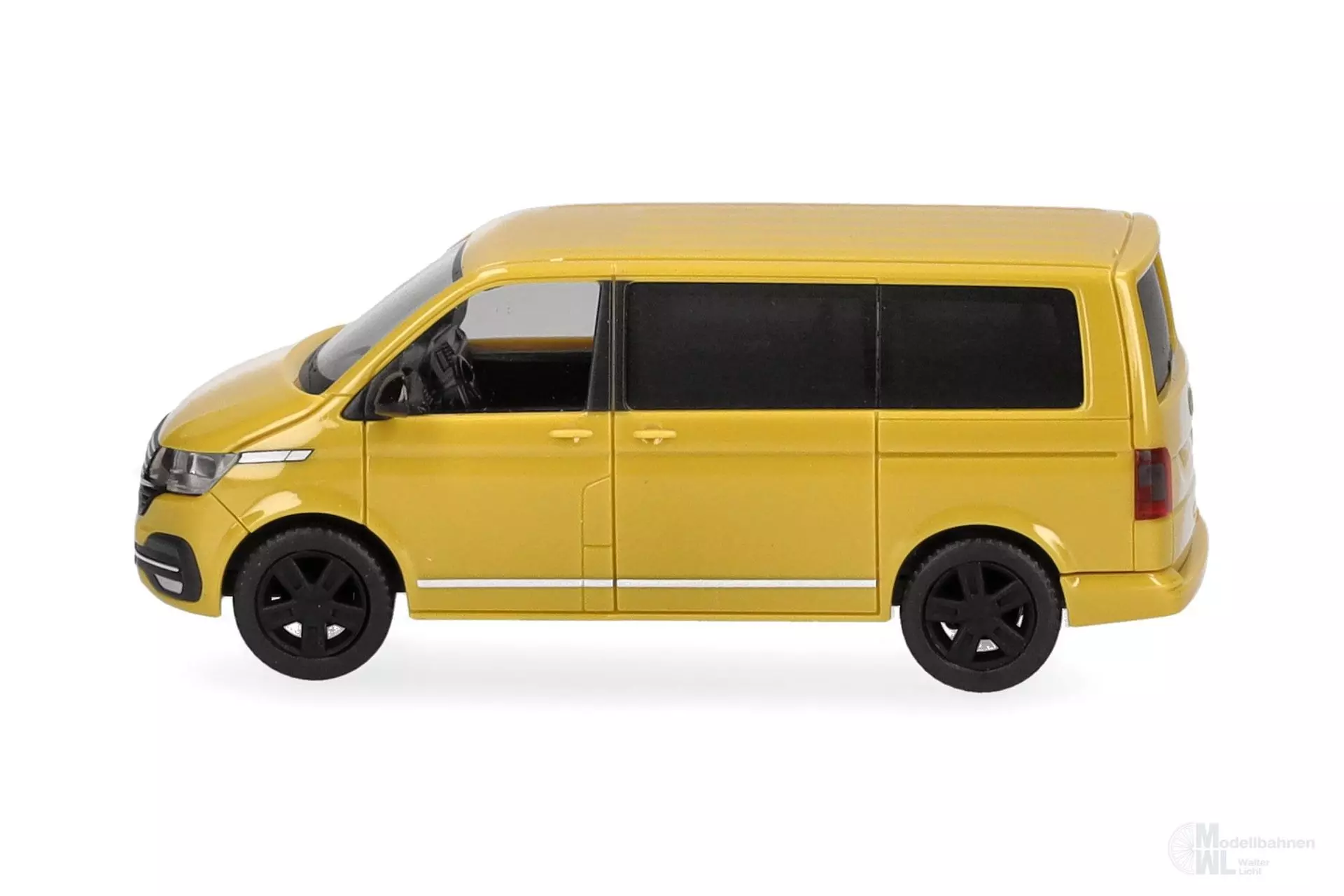 Der VW T 6.1 Caravelle hat keinen Lieferwagen-Status, eher zählt er zu den beliebtesten Familien-Vans europaweit. In der Farbgebung Grape Yellow erscheint das Modell bei Herpa als Farbneuheit.