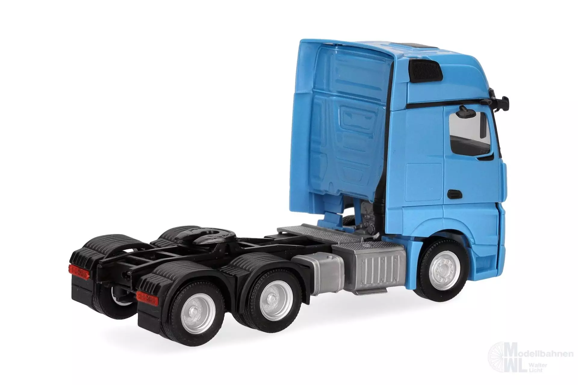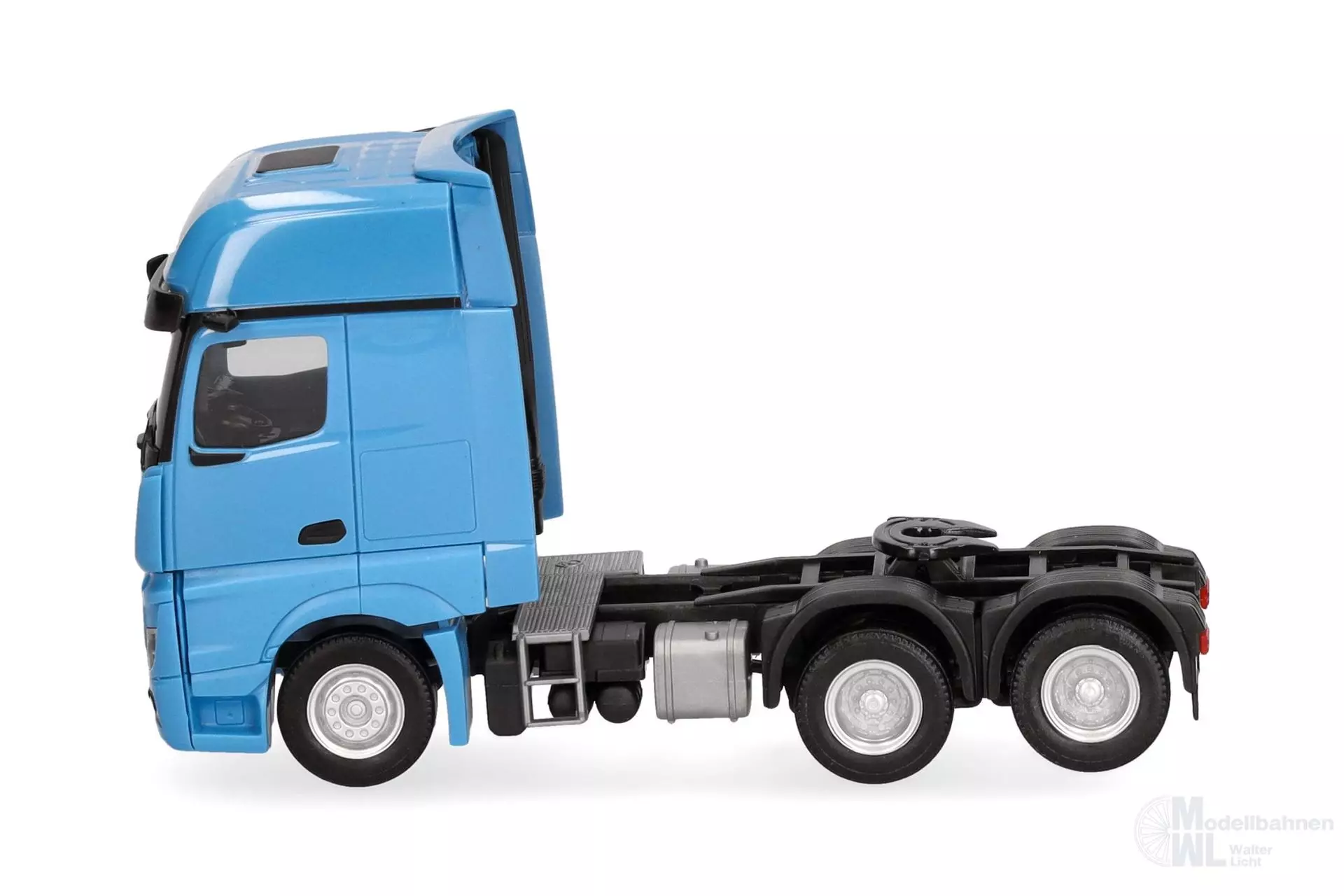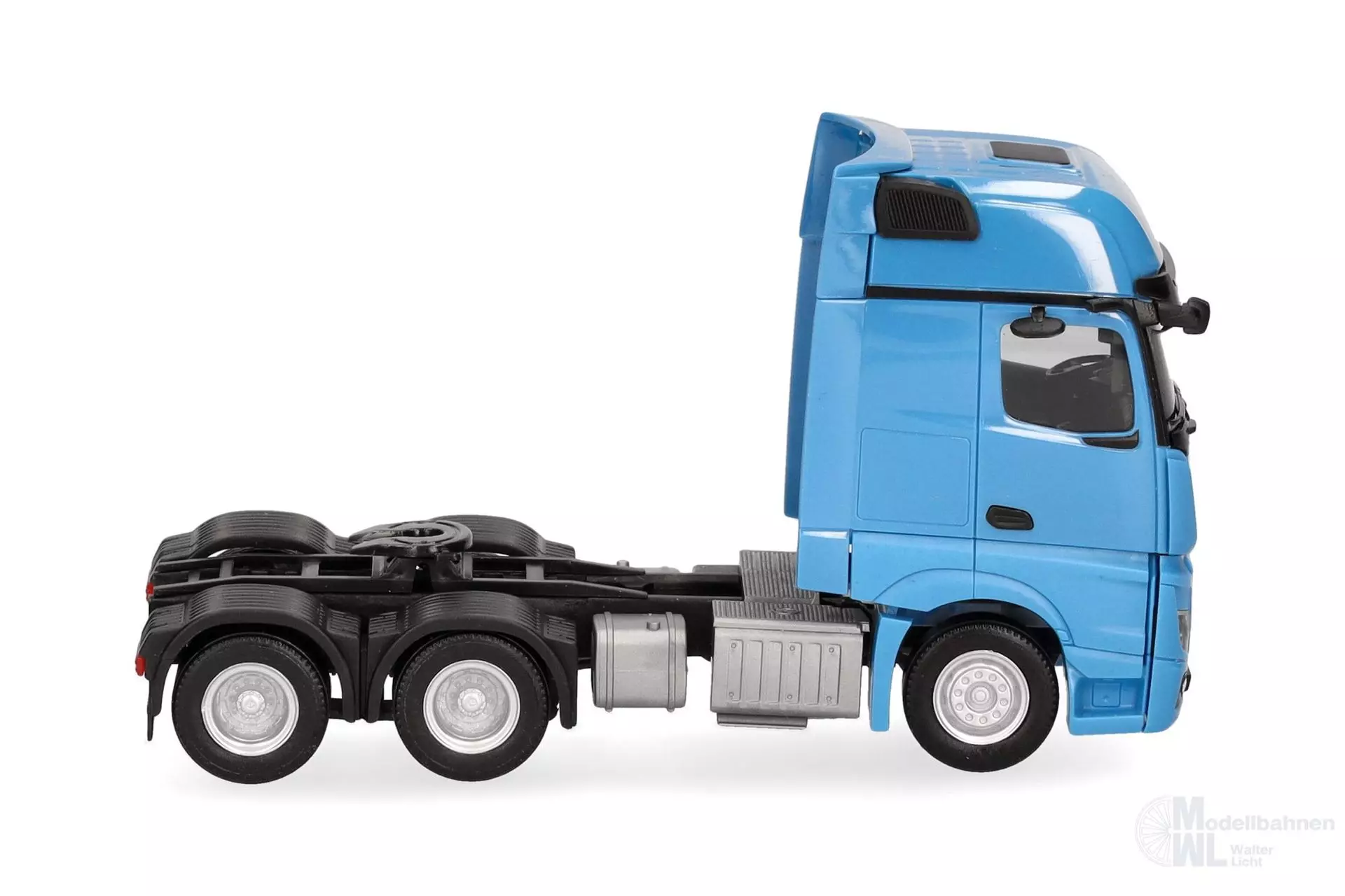 Die aktuelle Mercedes-Benz Actros Gigaspace 6x4 Zugmaschine erscheint in neuer Farbgebung lichtblau.