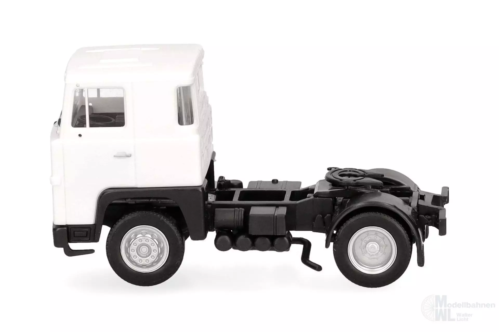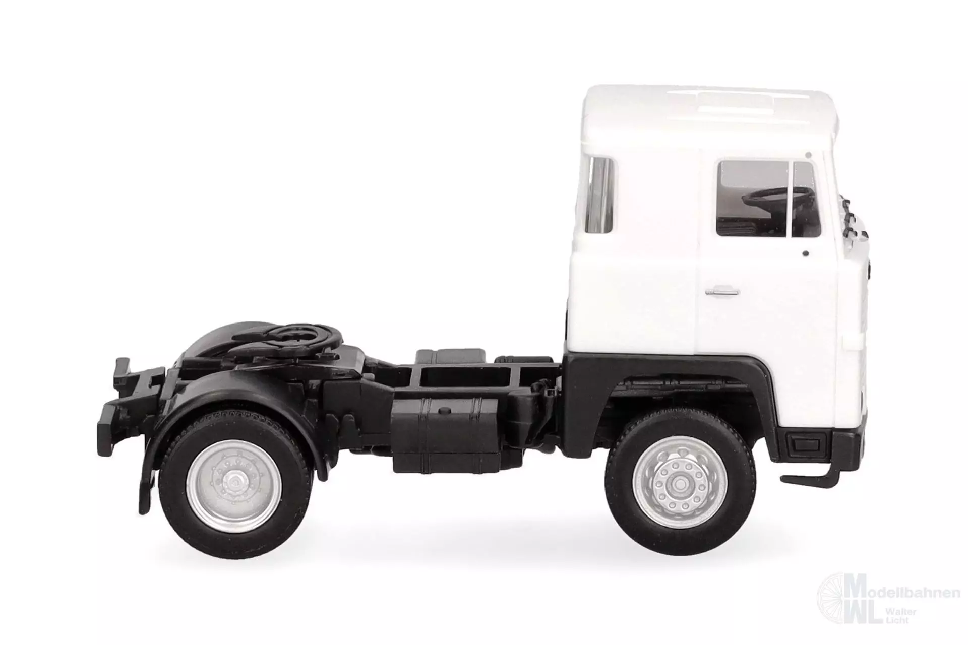 Die klassische Scania 141 Zugmaschine mit Fernverkehrs-Fahrerhaus erscheint in neuer Farbgebung weiß.