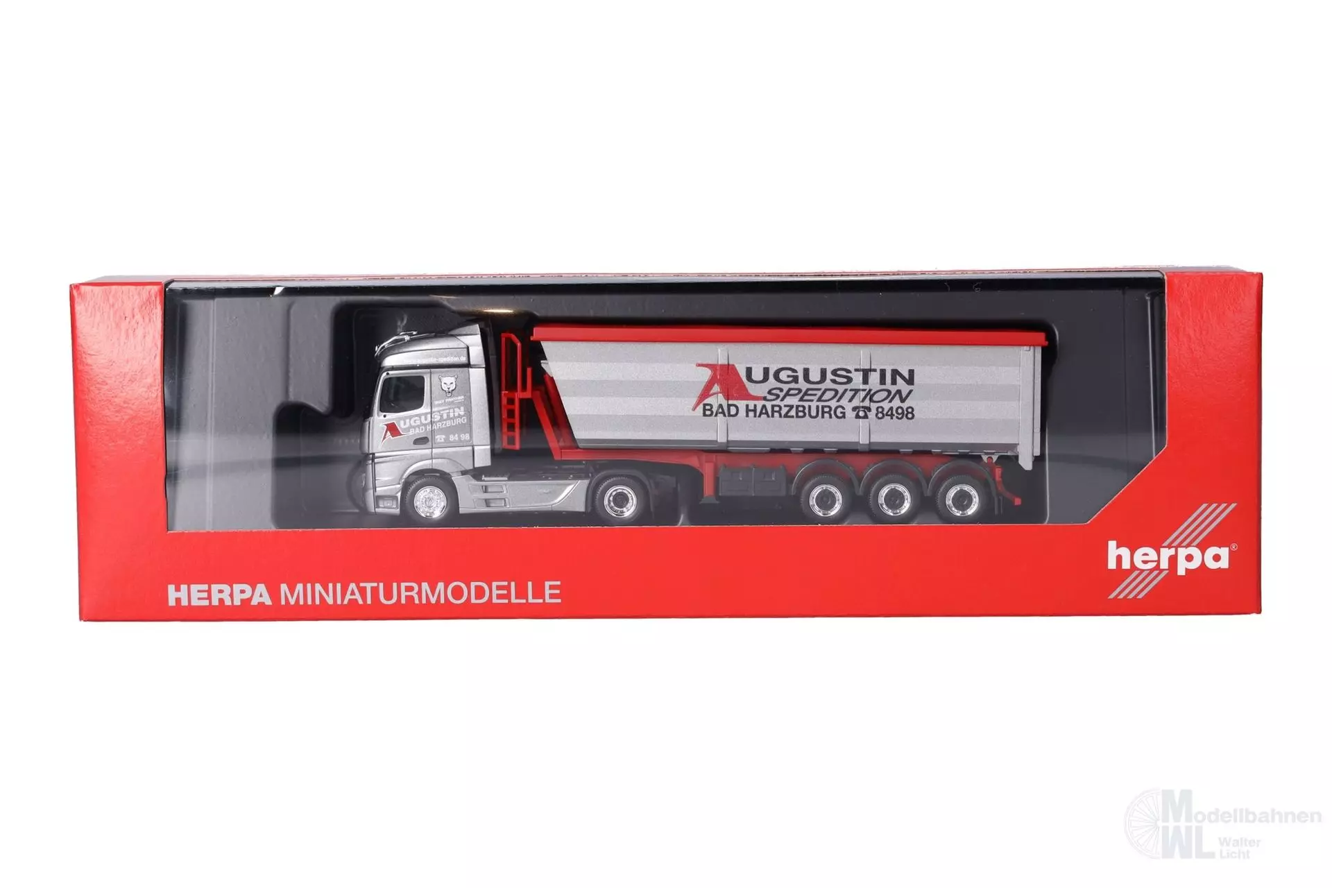 Produktinformationen "Herpa 319614 - Mercedes-Benz Actros Stahlmulden-Sattelzug Augustin Spedition H0 1:87"