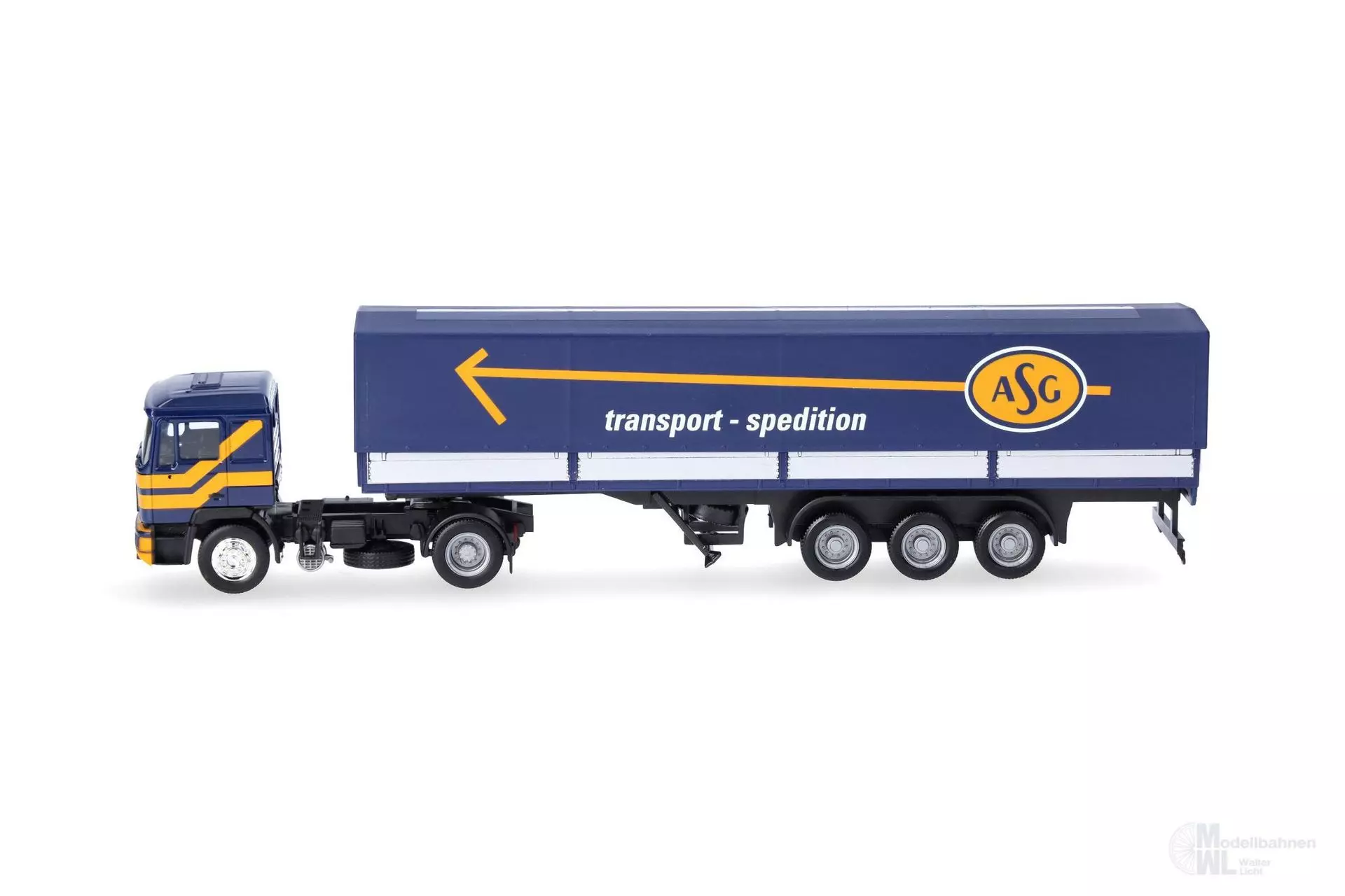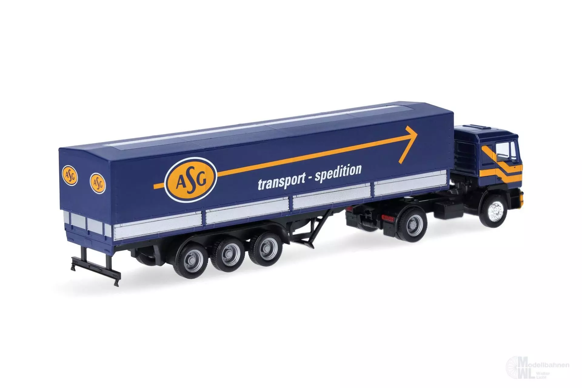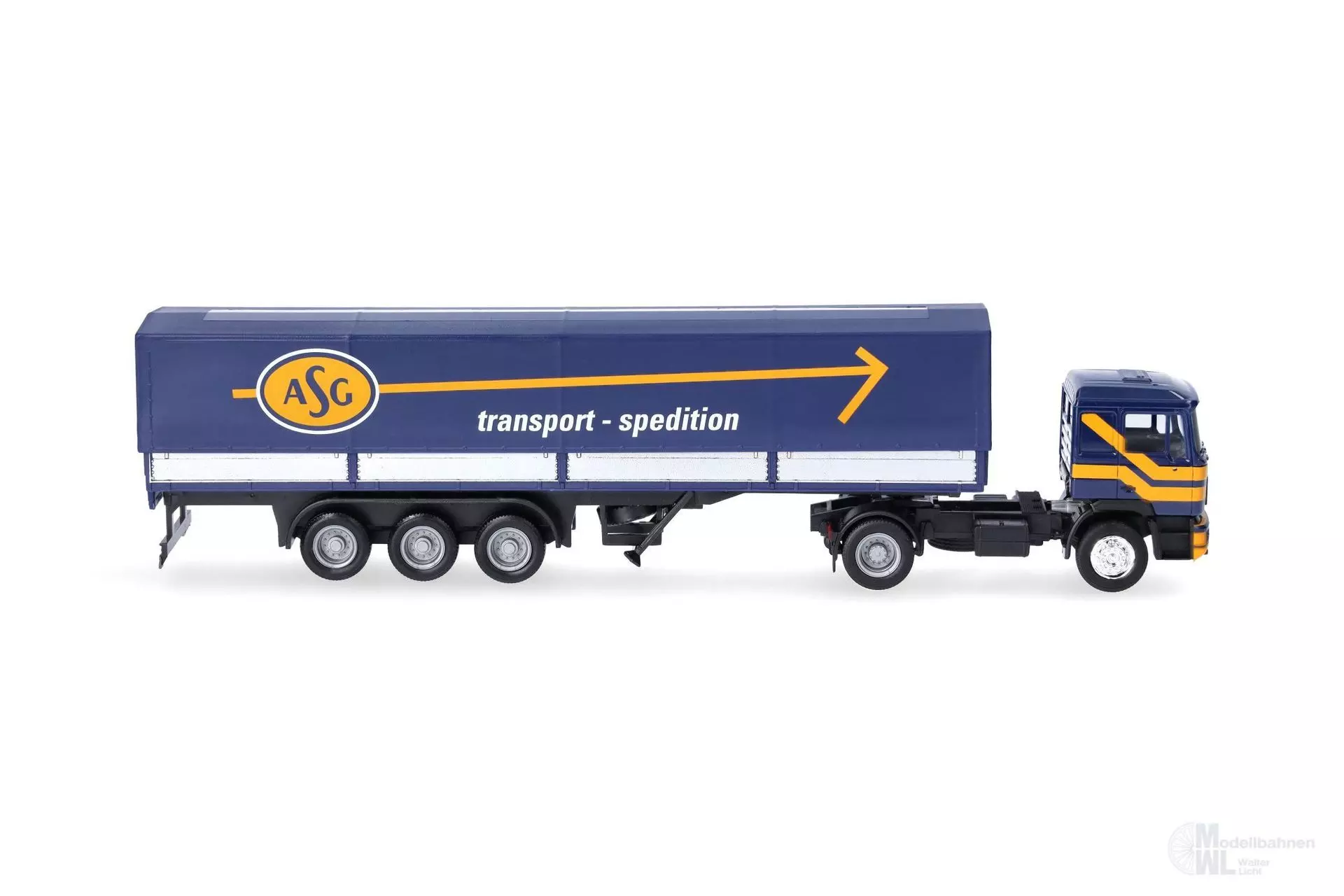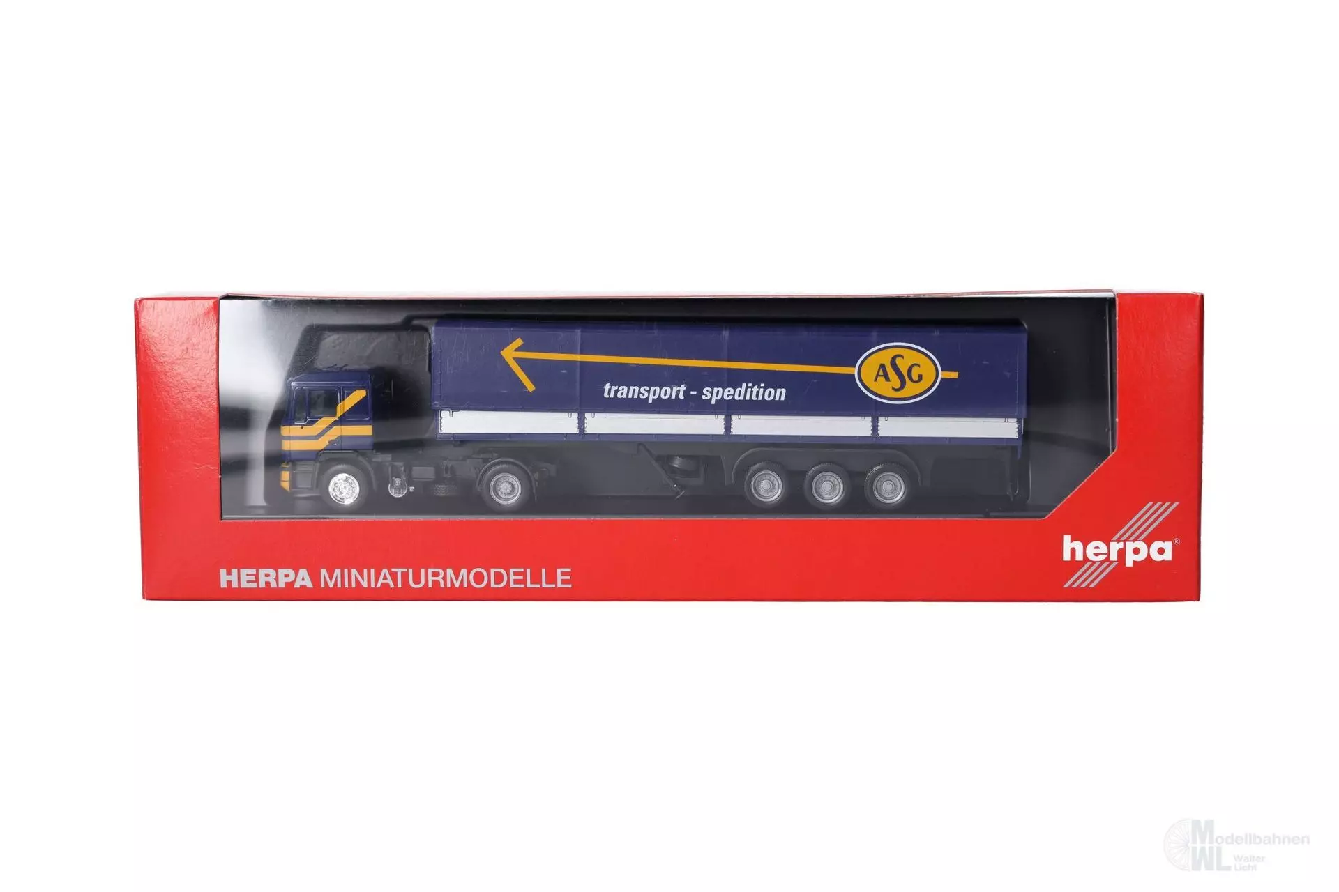 Produktinformationen "Herpa 319638 - MAN F 90 Planen-Sattelzug ASG H0 1:87"