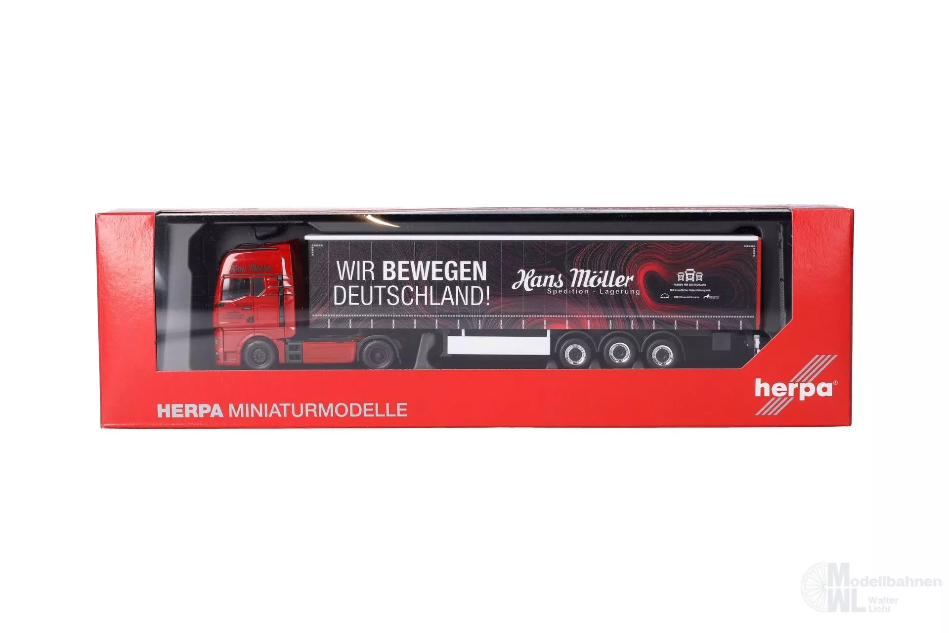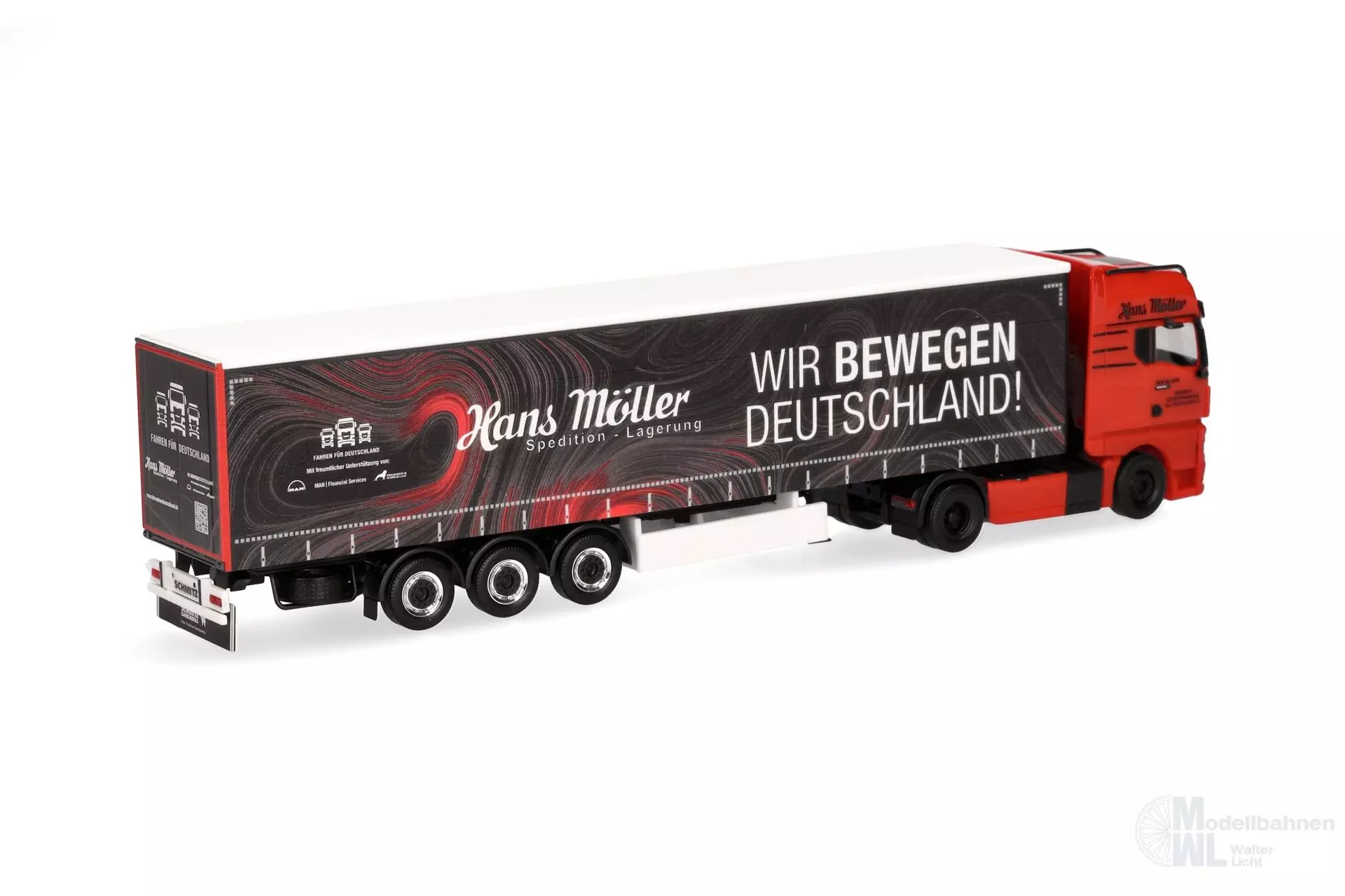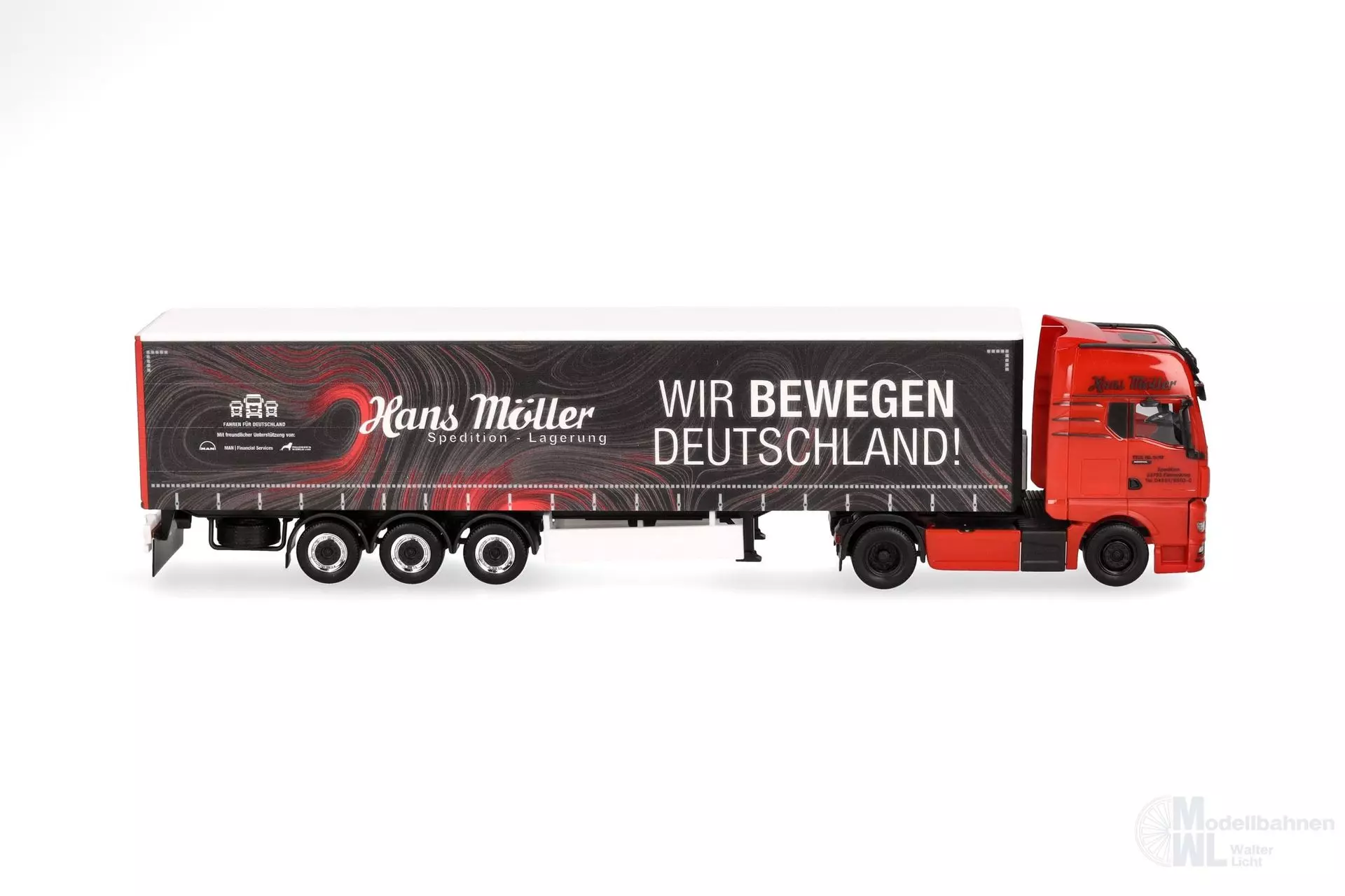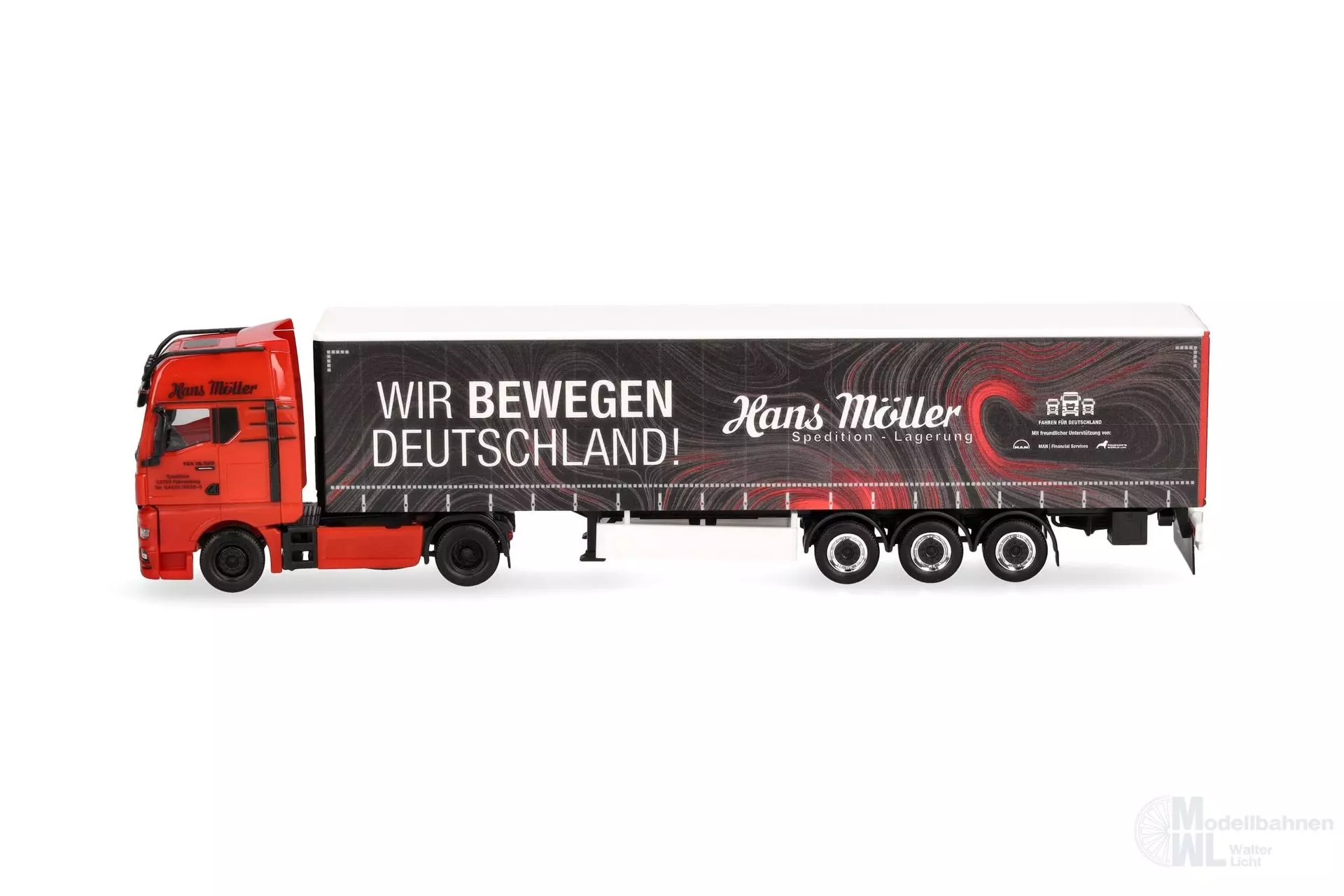 Produktinformationen "Herpa 319669 - MAN TGX GX Gardinenplanen Sattelzug Hans Möller H0 1:87"