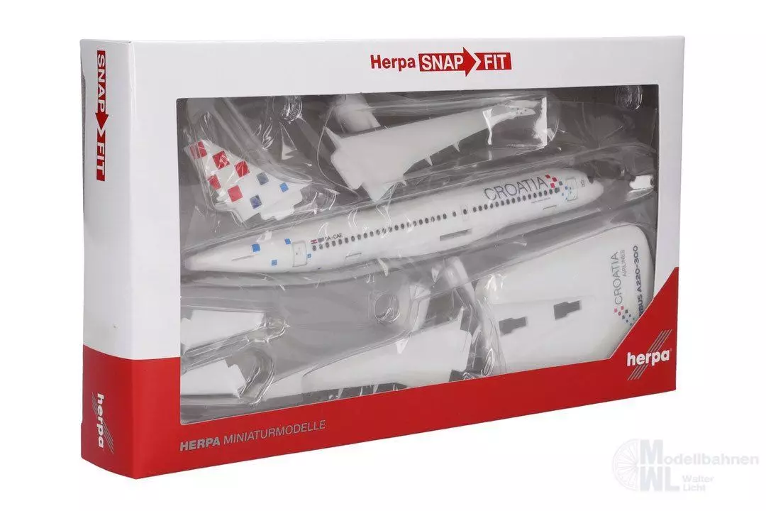 Im Juli 2024 erhielt die kroatische Fluggesellschaft ihr erstes von insgesamt 14 bestellten Exemplaren des Airbus A220. Der erste Linienflug führte – aus historischen Gründen – von der kroatischen Hauptstadt Zagreb nach Frankfurt: 1992 führte der erste internationale Flug der damals neu gegründeten Airline ebenfalls zu dem größten deutschen Flughafen. In wenigen Jahren werden die A220 die komplette aktuelle Flotte der Croatia Airlines, bestehend aus A319, A320 und Q400 ablösen. SnapFit-Modelle von Herpa überzeugen mit einem unschlagbaren Preis-/Leistungsverhältnis. Sie werden mit einem Display-Stand geliefert und sind mit wenigen Handgriffen ohne Kleber oder sonstigen Werkzeugen zusammengebaut.
