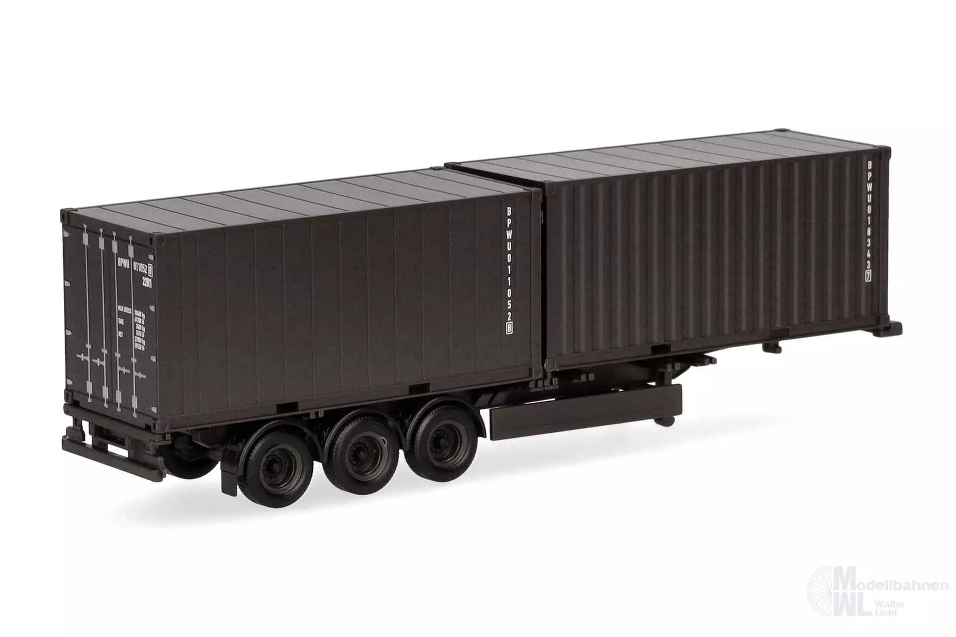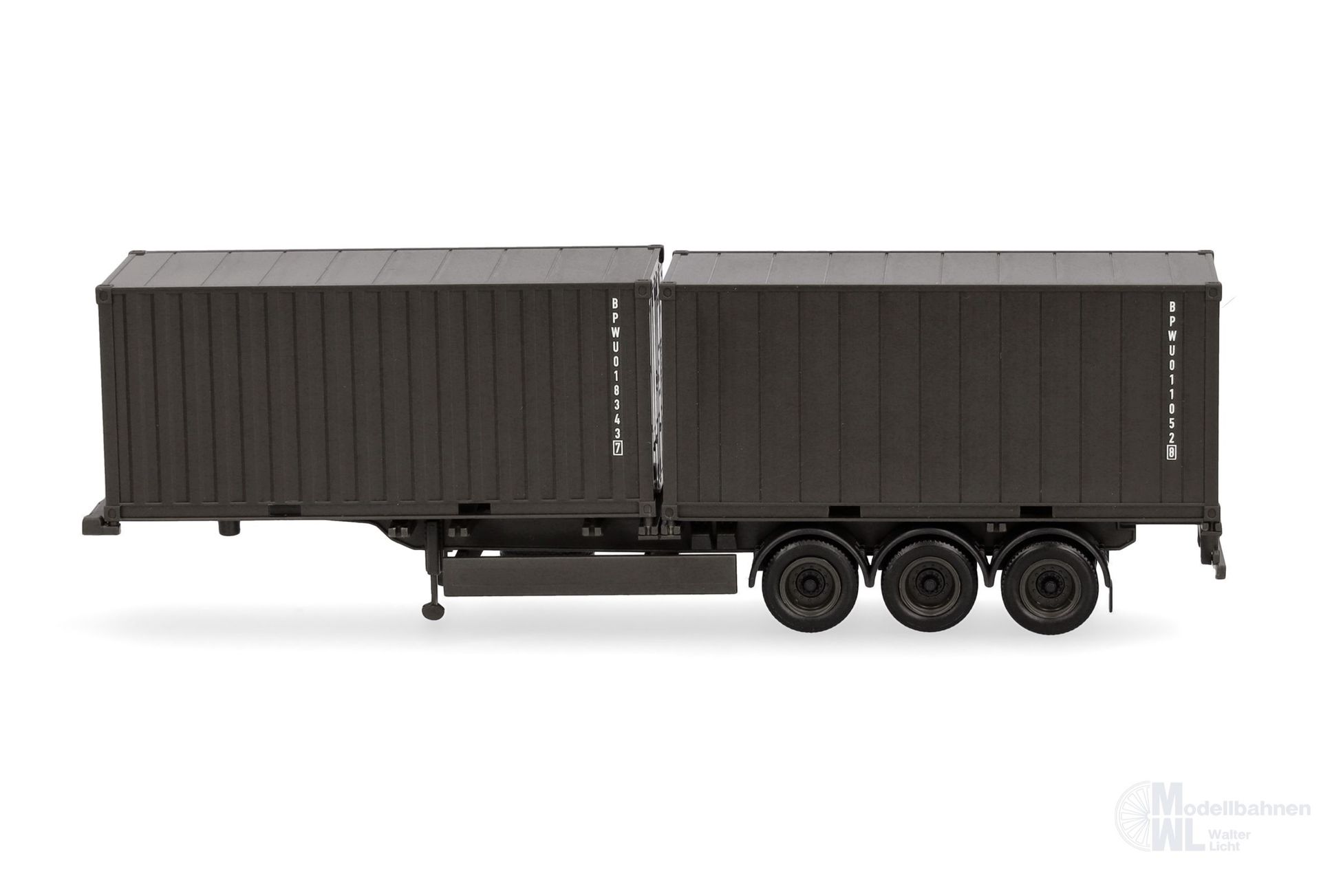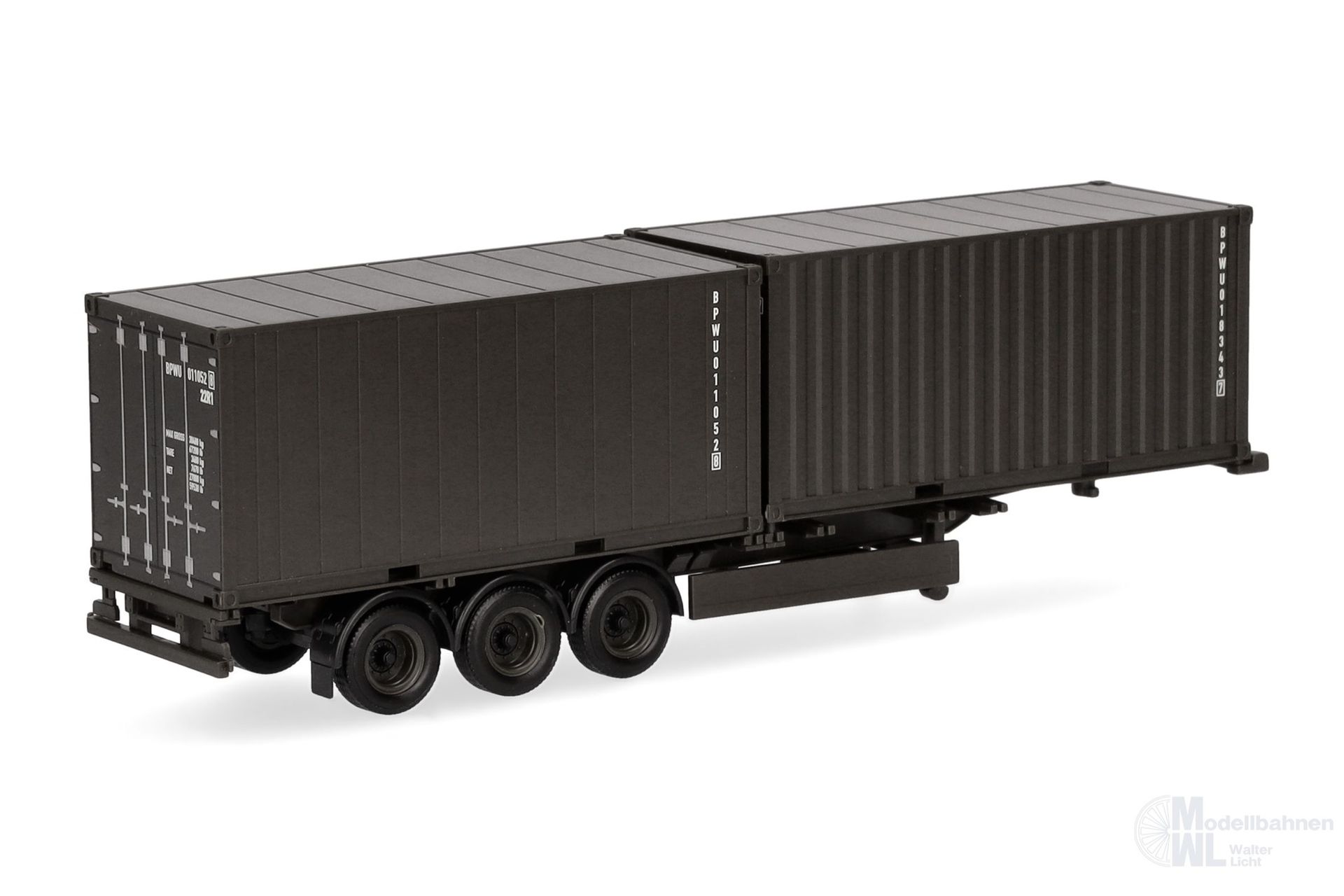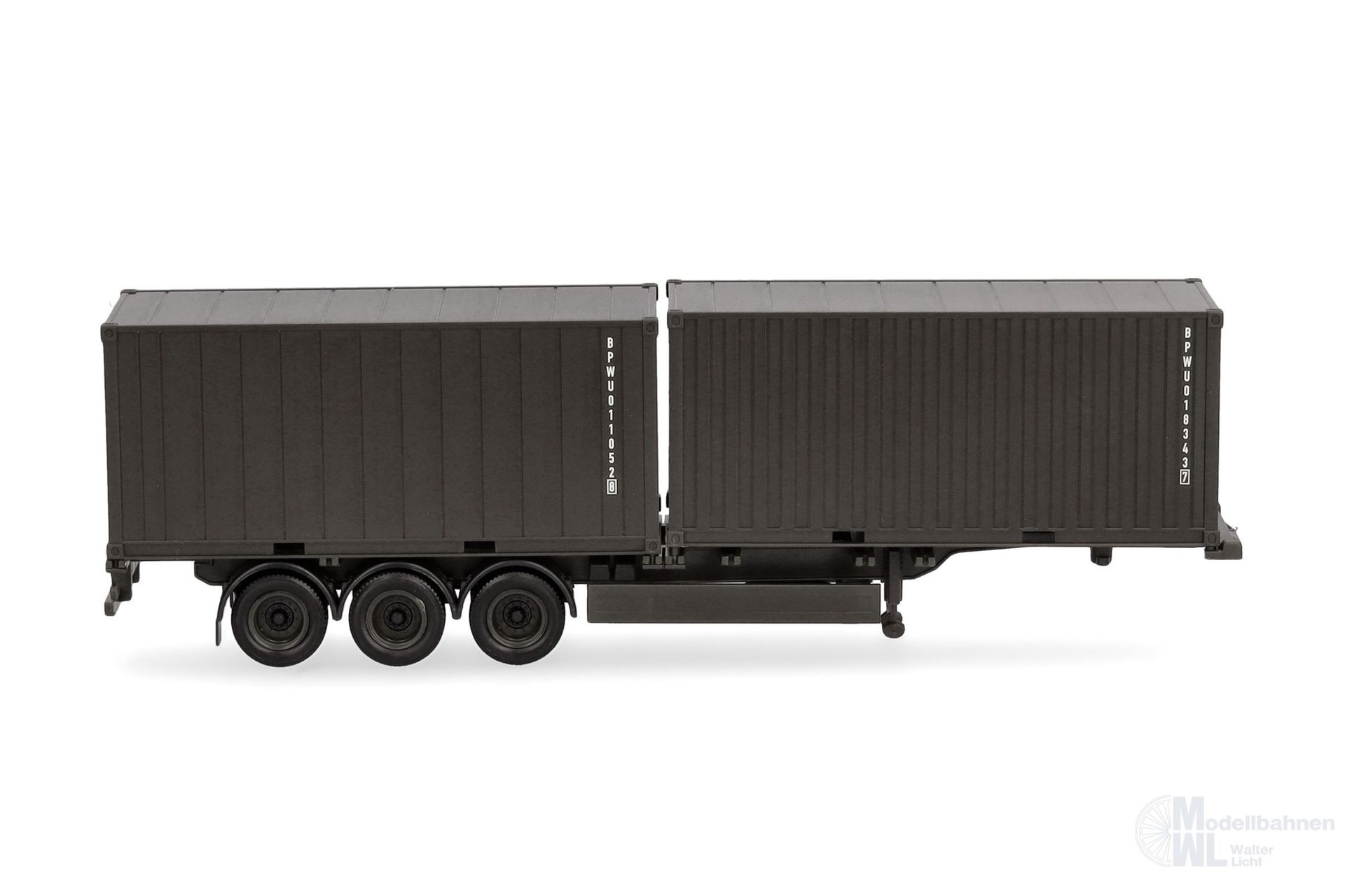 Produktinformationen "Herpa 747240 - Containerauflieger 3-achs mit 2x20ft Container H0 1:87"
