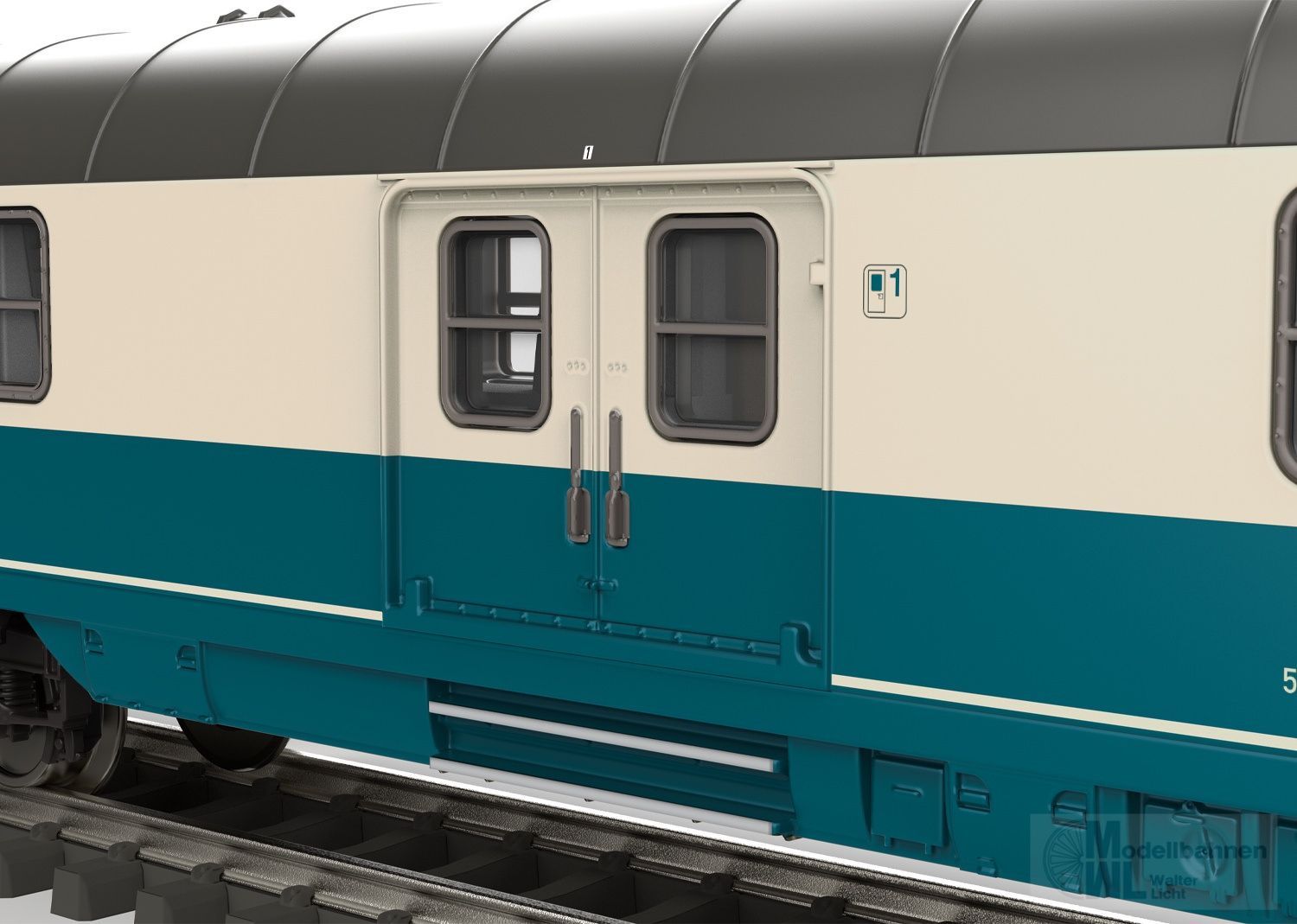 Modell: Neukonstruktion. Wagen mit Kinematik für Kurzkupplung und mit einem LED-Zugschlusssignal. Vorbereitet für den nachträglichen Einbau einer Innenbeleuchtung. Länge über Puffer 165 mm.